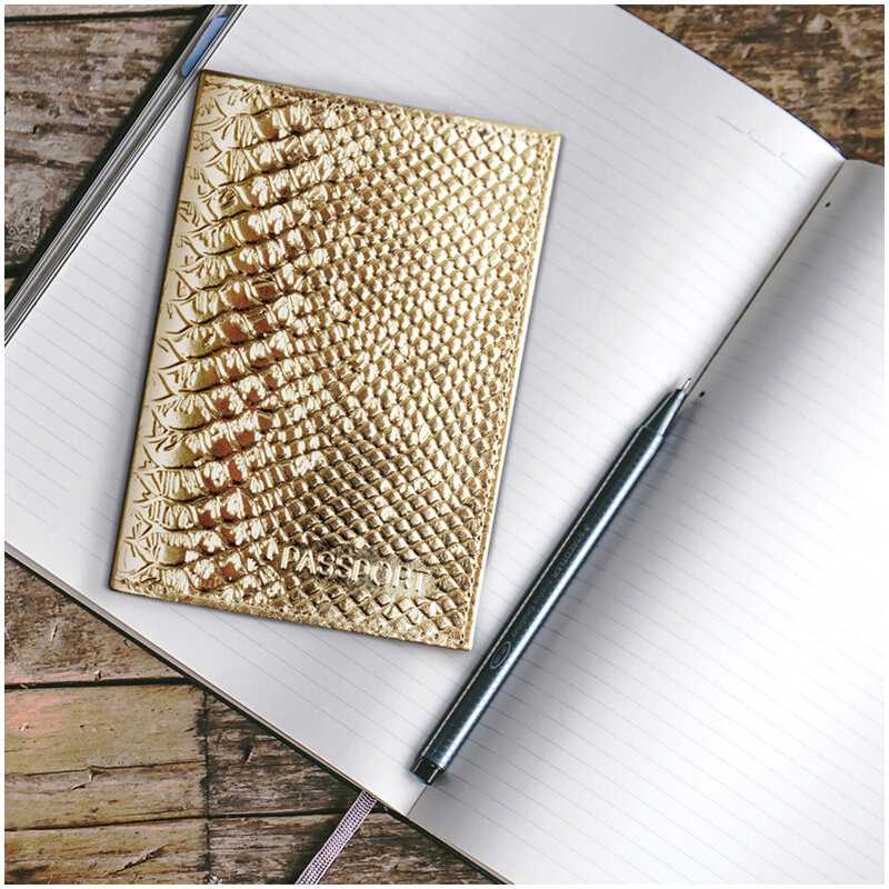 Обложка для паспорта OfficeSpace "Питон", кожа, тиснение, золотой металлик (339851)