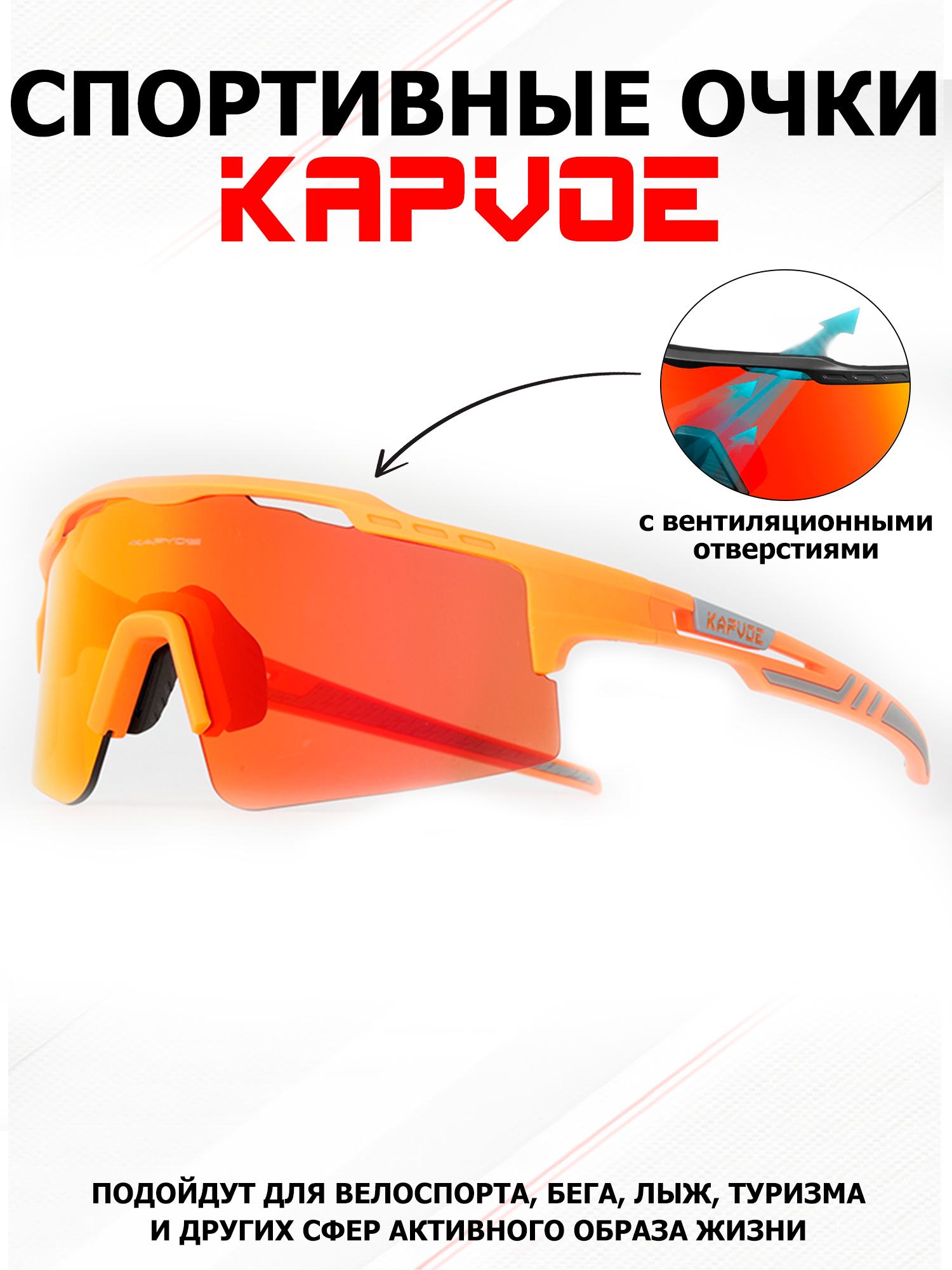 Очки спортивные солнцезащитные для мужчин и женщин Kapvoe для велосипеда, туризма, бега, лыжероллеров, лыж, цвет черный красный оранжевый, UV400