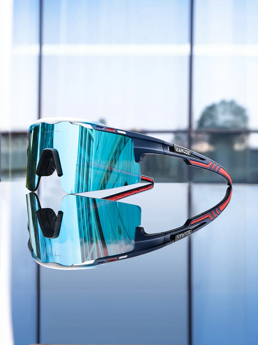 Очки спортивные солнцезащитные Kapvoe с защитой от UV400 с защитой от UV400, цвет голубой, белый, красный cиней линзой
