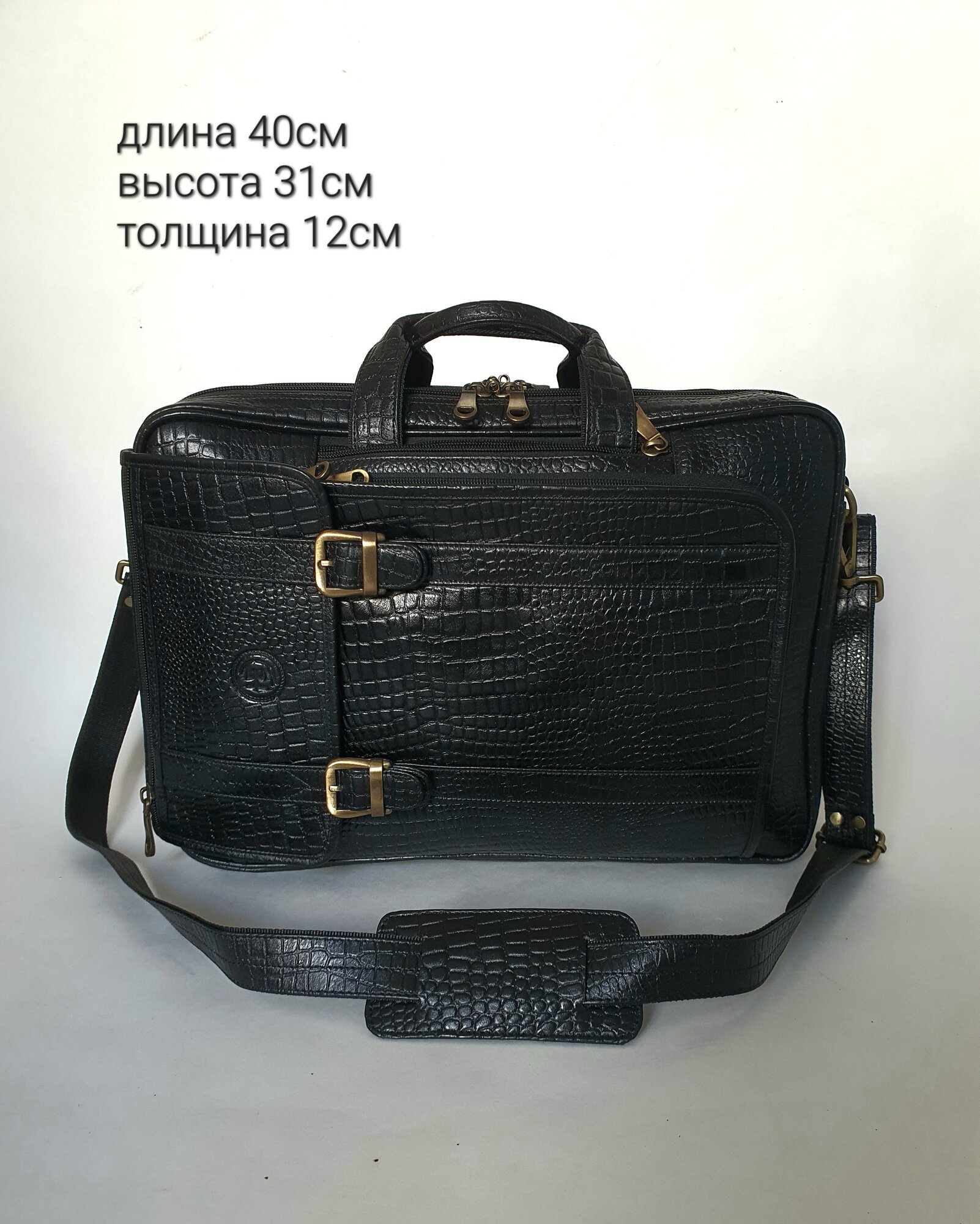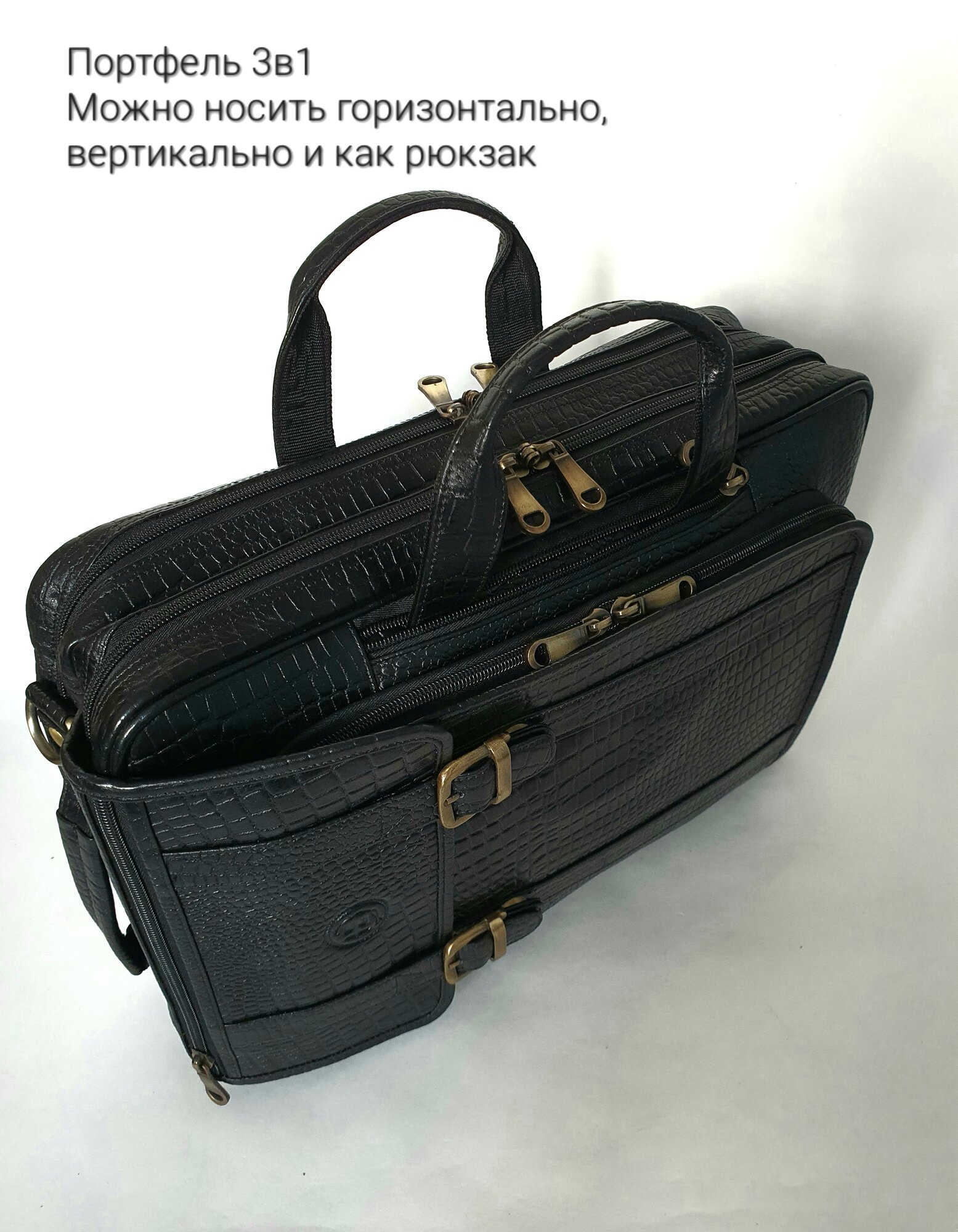 Портфель мужской Black Buffalo, натуральная кожа, сумка кожаная, деловая, для ноутбука, трансформер, документов А4, черный, под рептилию