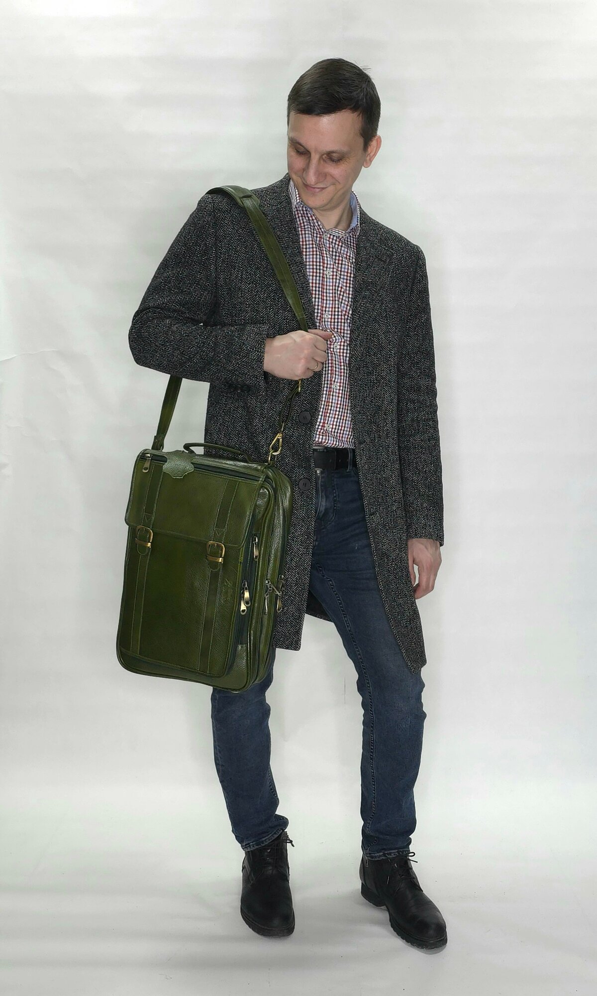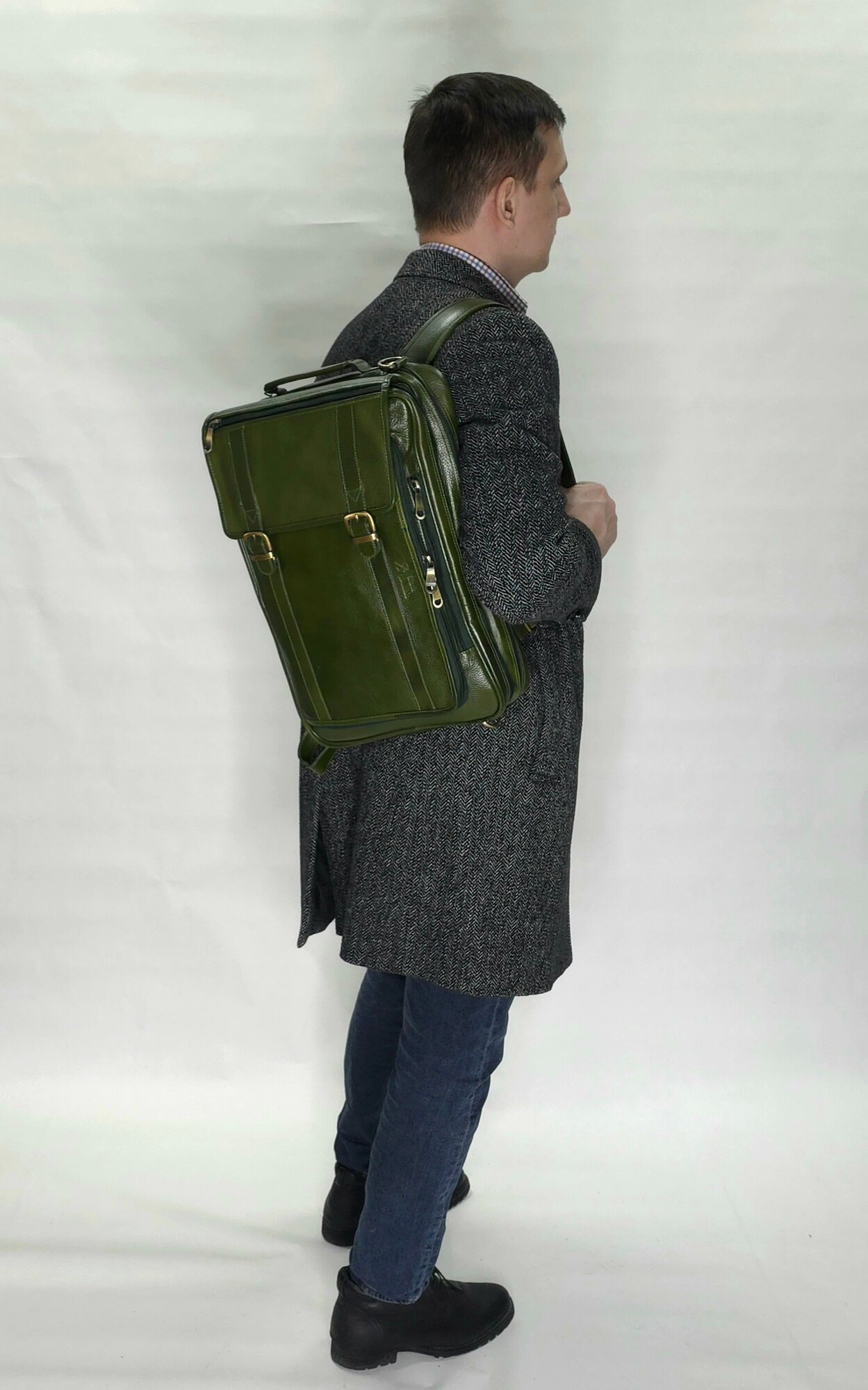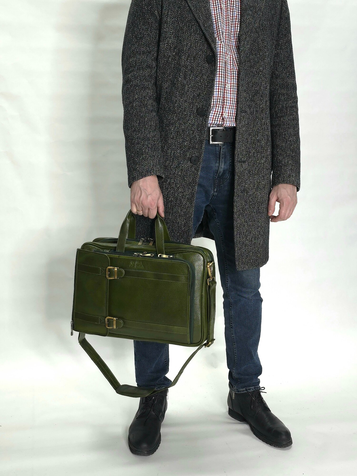 Портфель мужской Black Buffalo, натуральная кожа, сумка кожаная, деловая, для ноутбука, трансформер, документов А4, зеленый