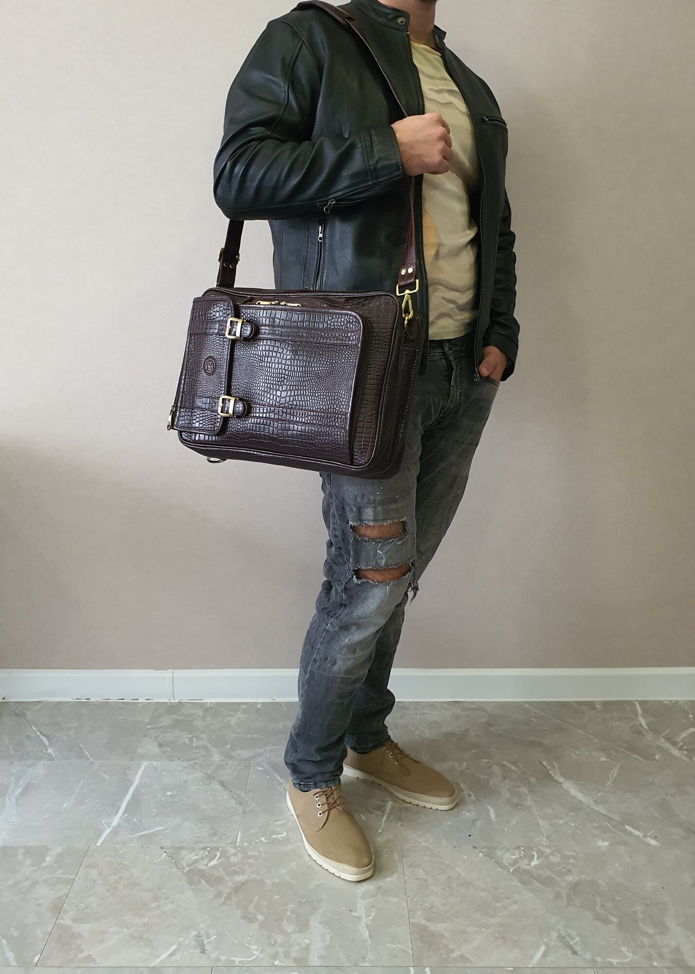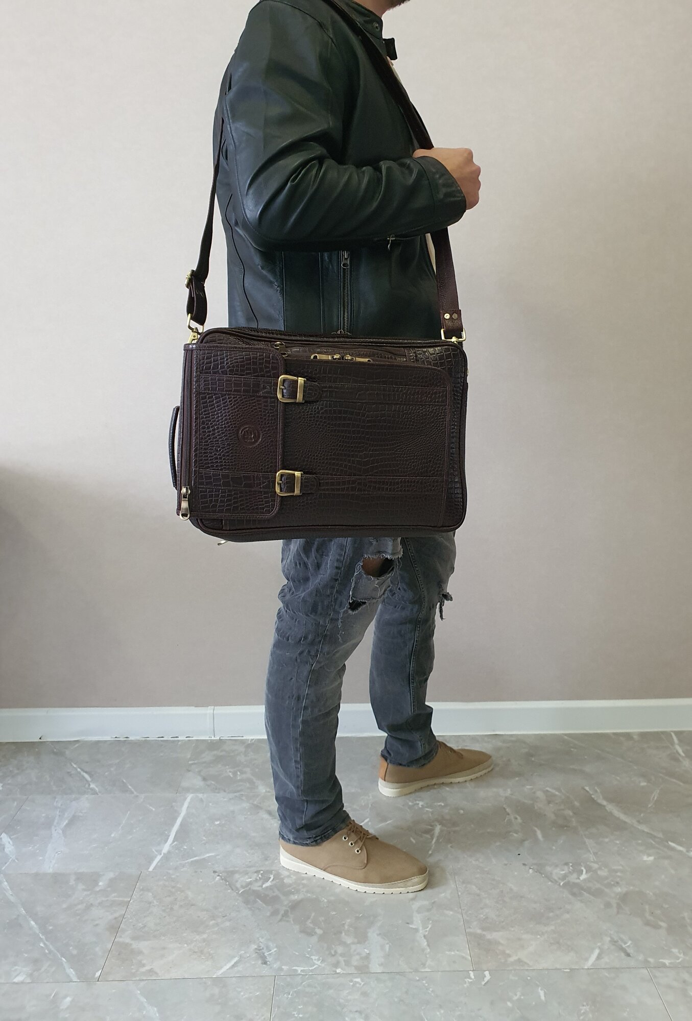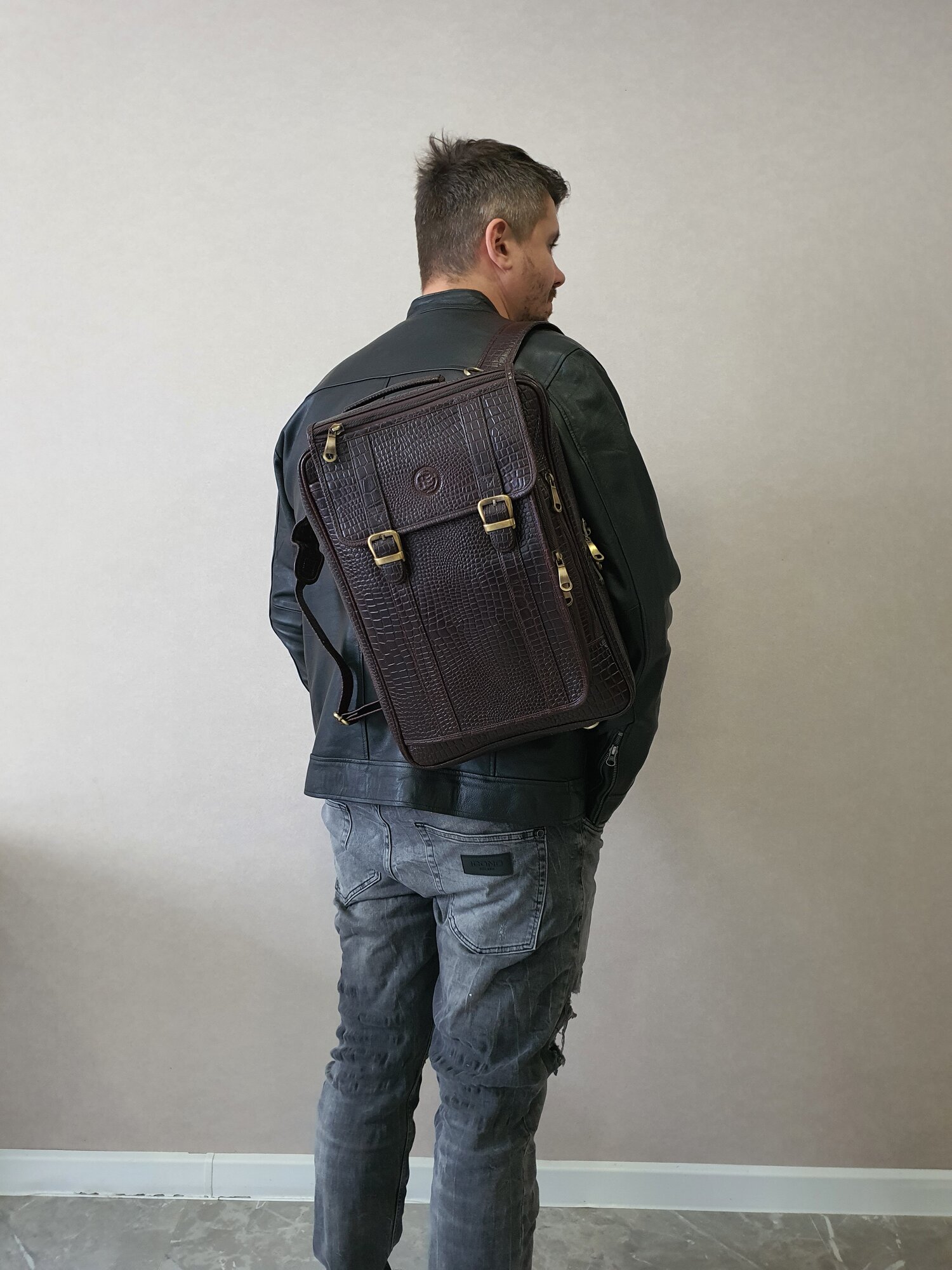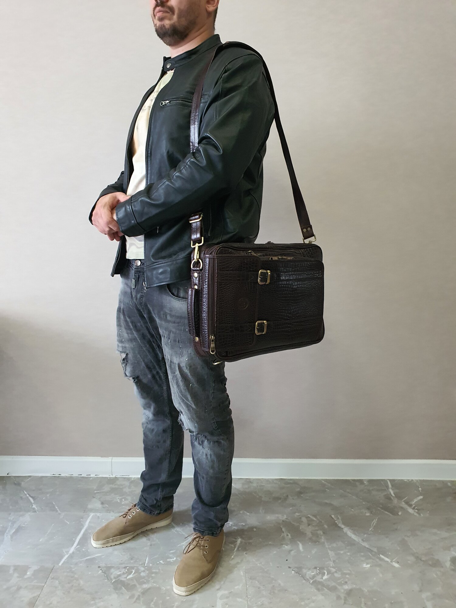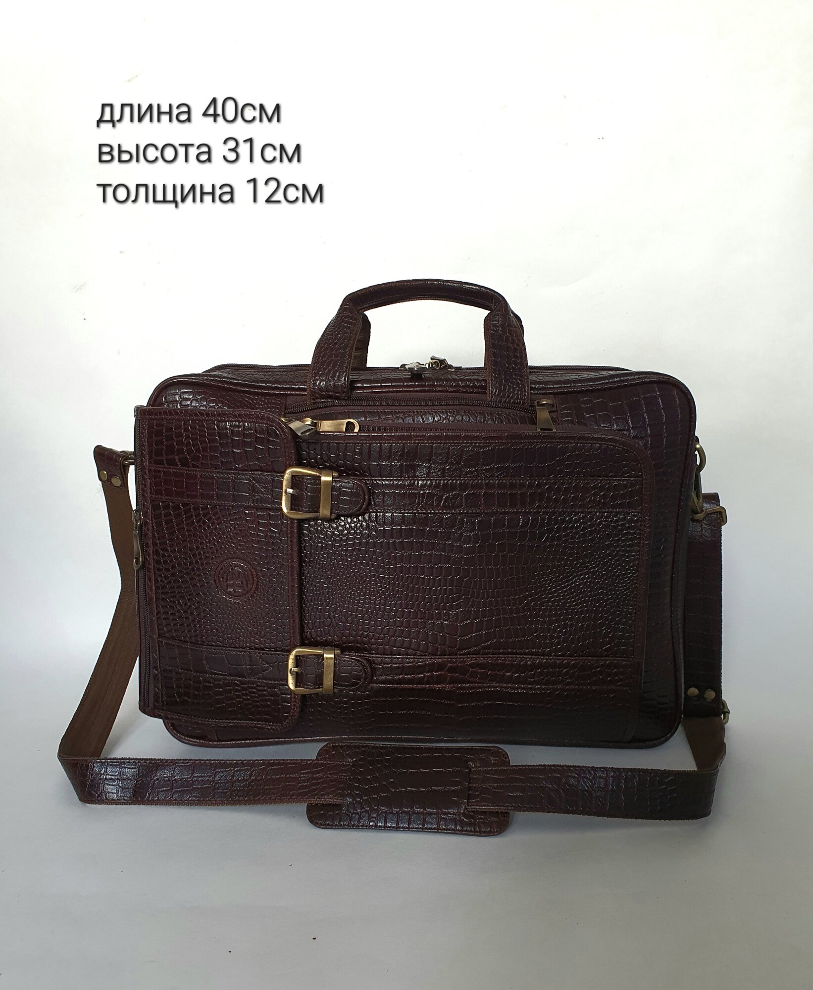 Портфель мужской Black Buffalo, натуральная кожа, сумка кожаная, деловая, для ноутбука, трансформер, документов А4, коричневый, под рептилию