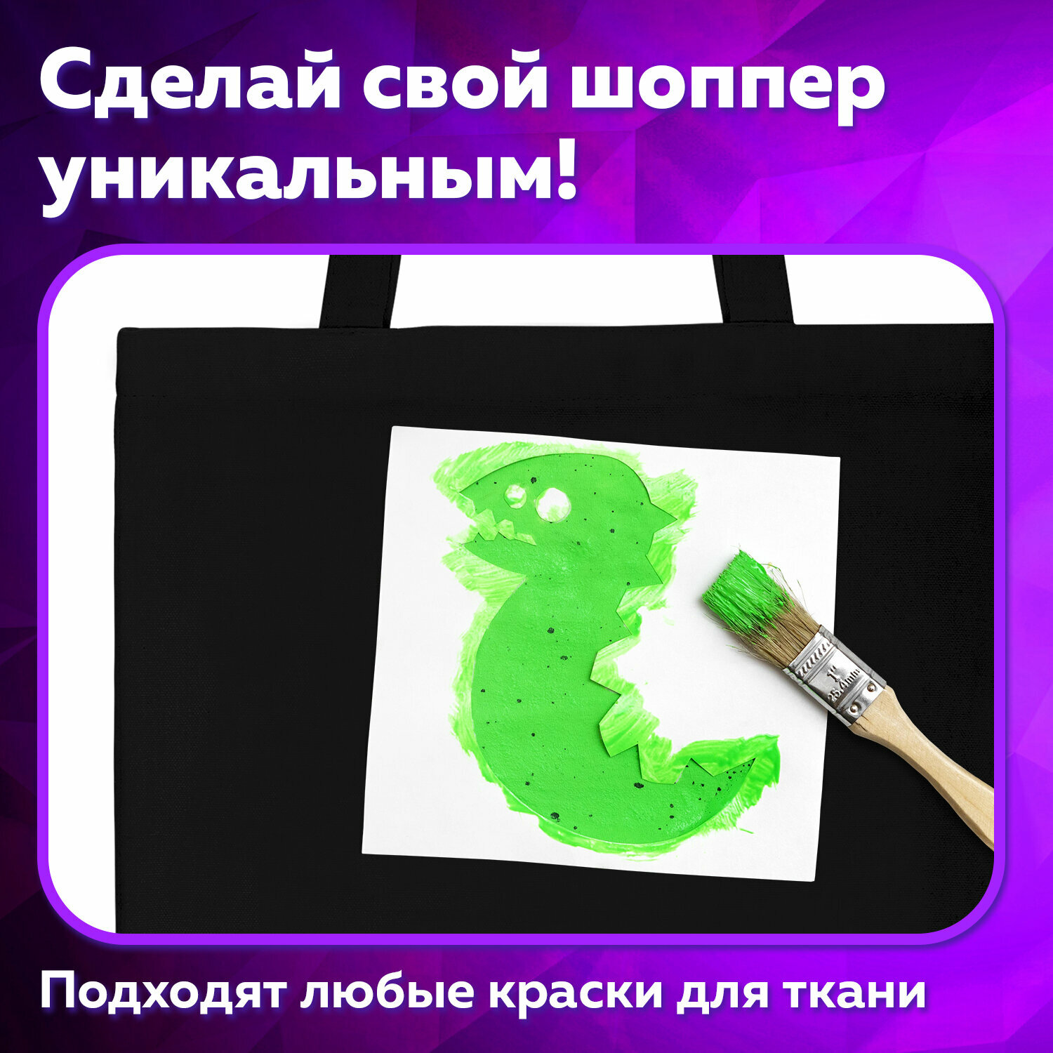Сумка шоппер женская, шопер на плечо, на руку Brauberg, канвас, 40х35 см, черный, Vector girl, 271899