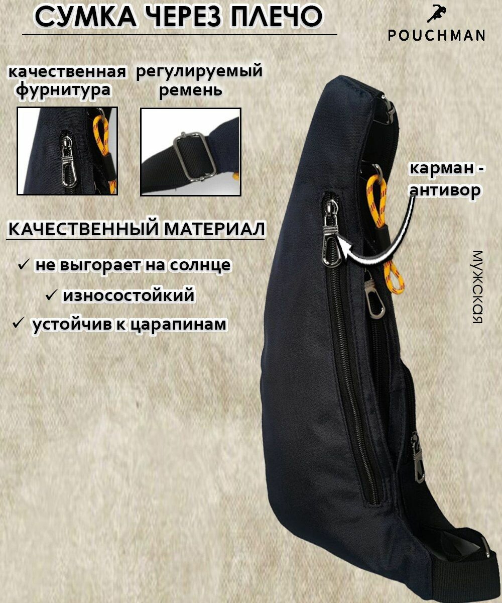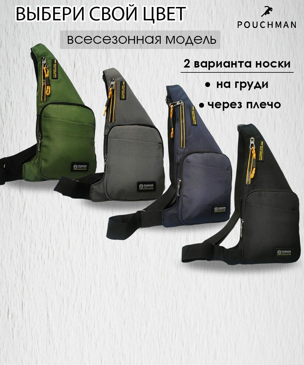 Нагрудная сумка-рюкзак текстильная PouchMan, однолямочный, мужской, женский, через плечо, кобура, тканевая, слинг