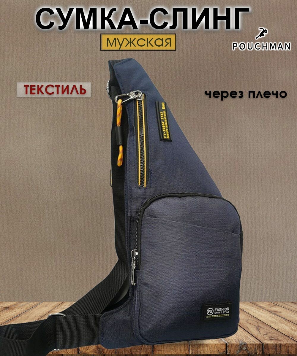 Купить Сумка слинг POUCHMAN, фактура гладкая, синий