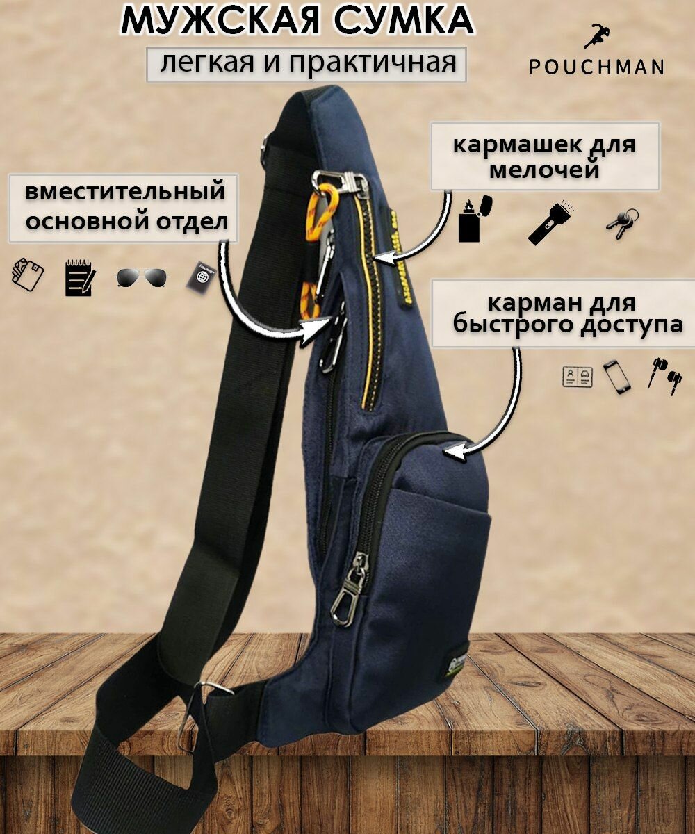 СохранитьСумка слинг POUCHMAN, фактура гладкая, синий интересное: