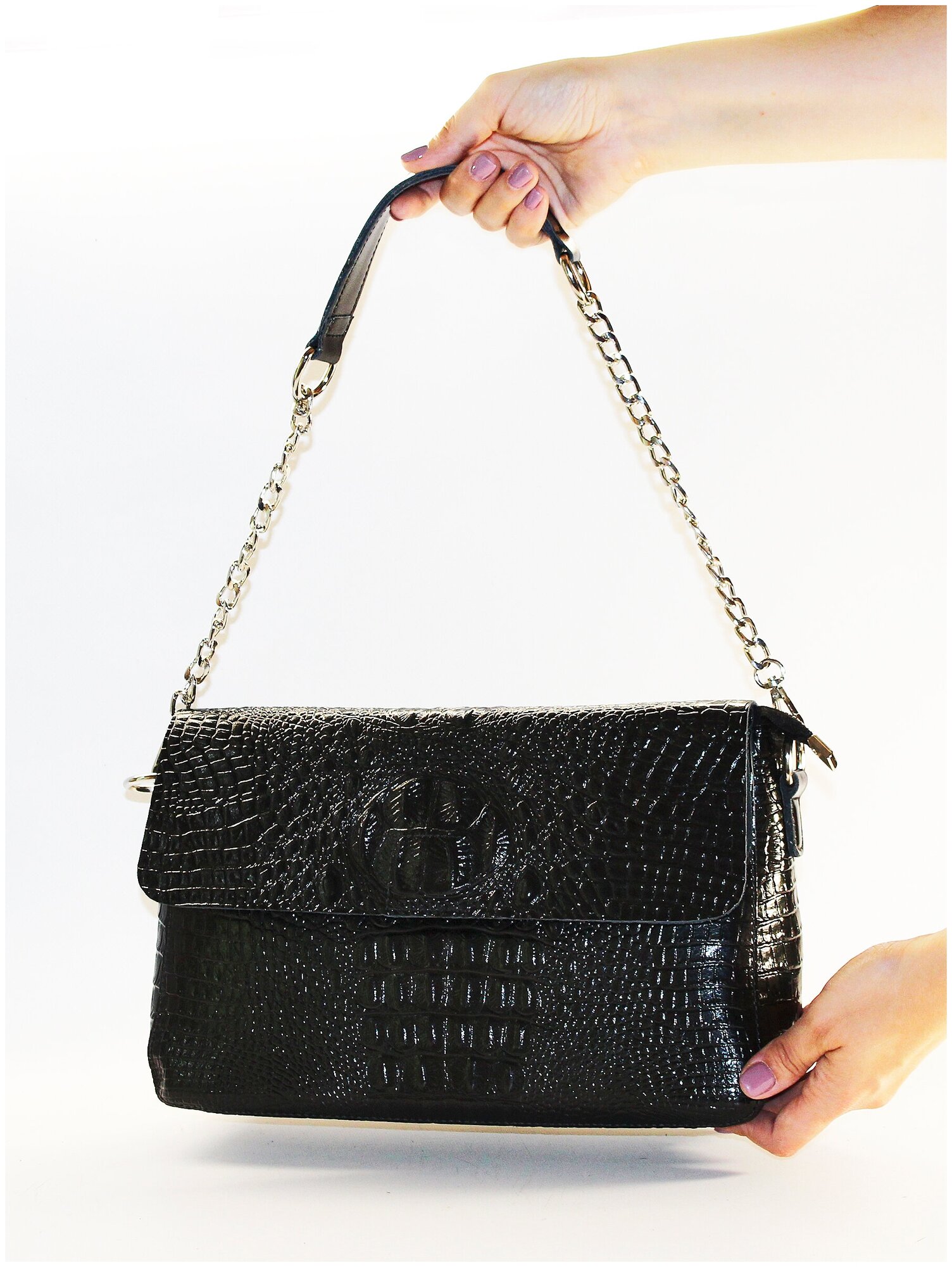 Сумка кросс-боди Finsa, фактура под рептилию, черная интересное: