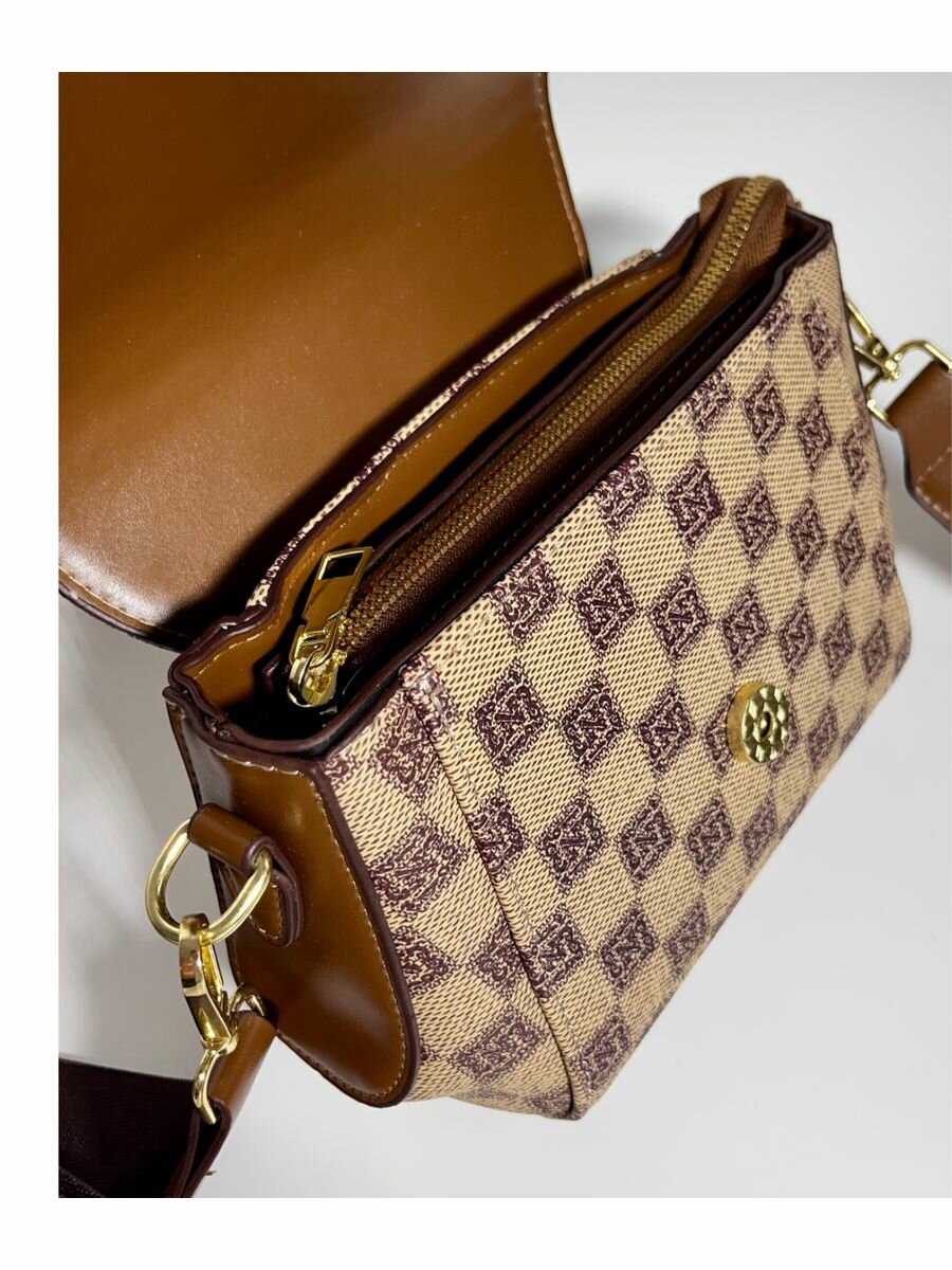 Купить Сумка кросс-боди WoW Zina, фактура зернистая, матовая, рельефная, коричневый/бежевый