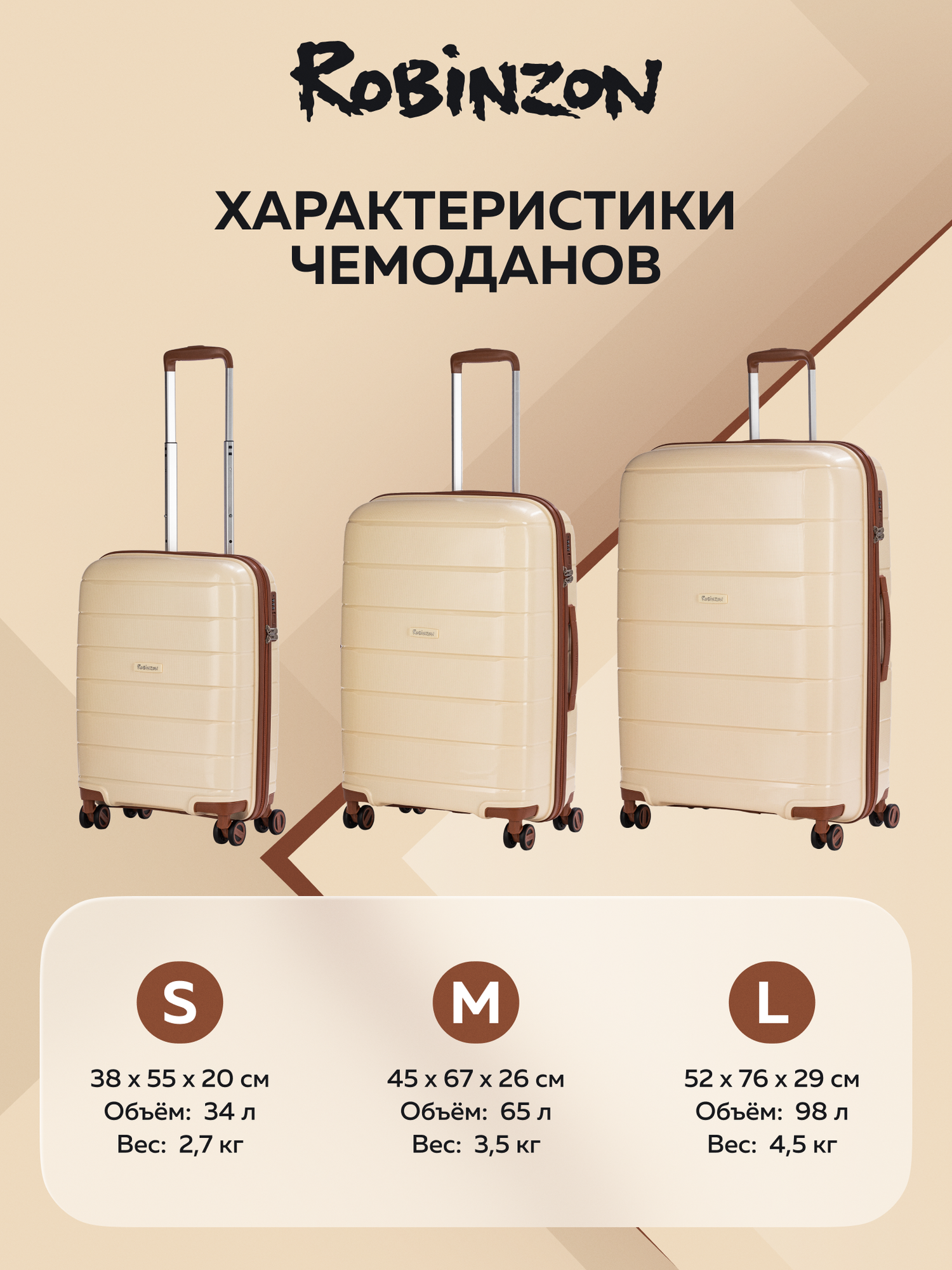 Чемодан Robinzon Malta, 34 л, размер S, шампанское