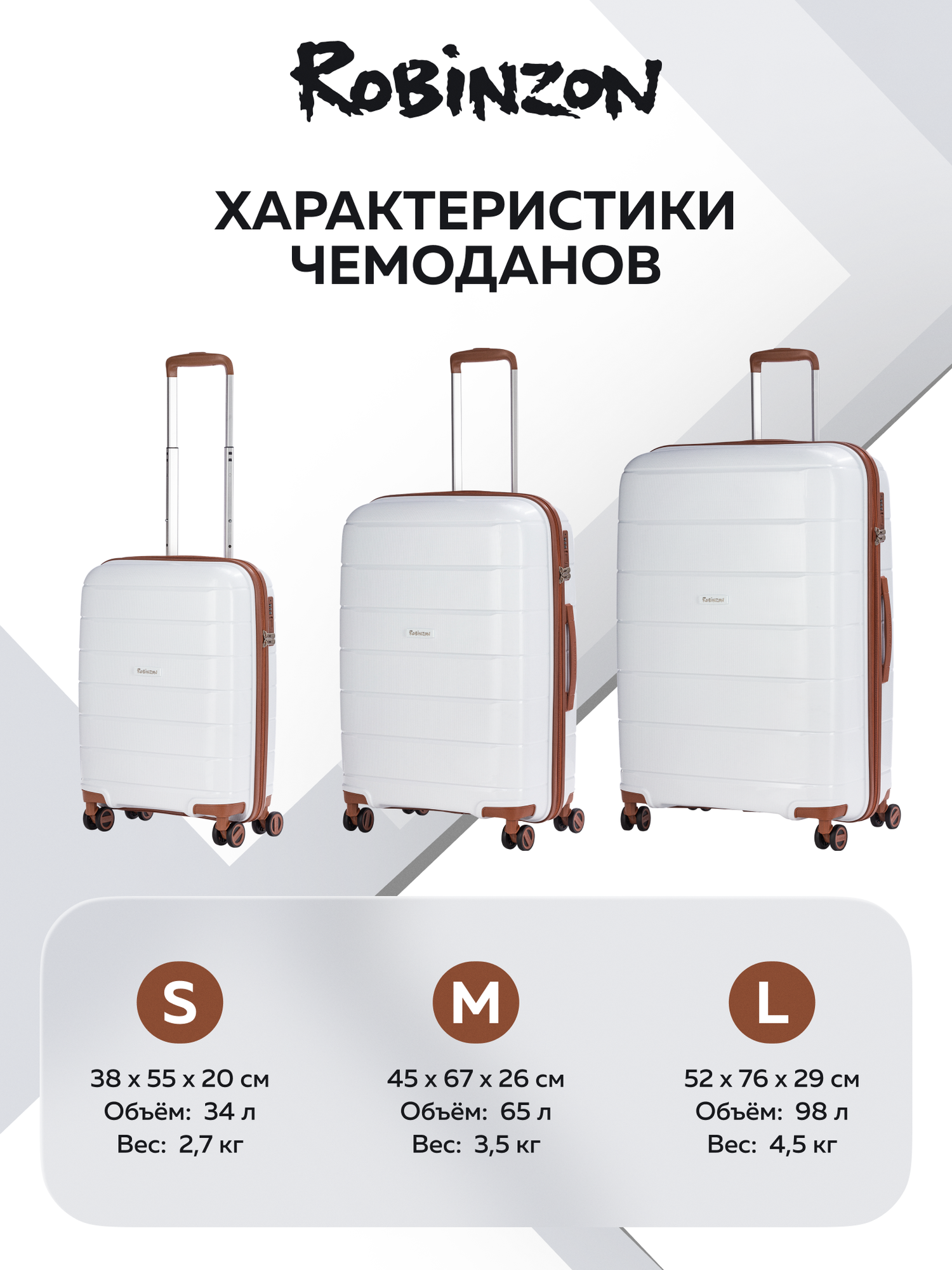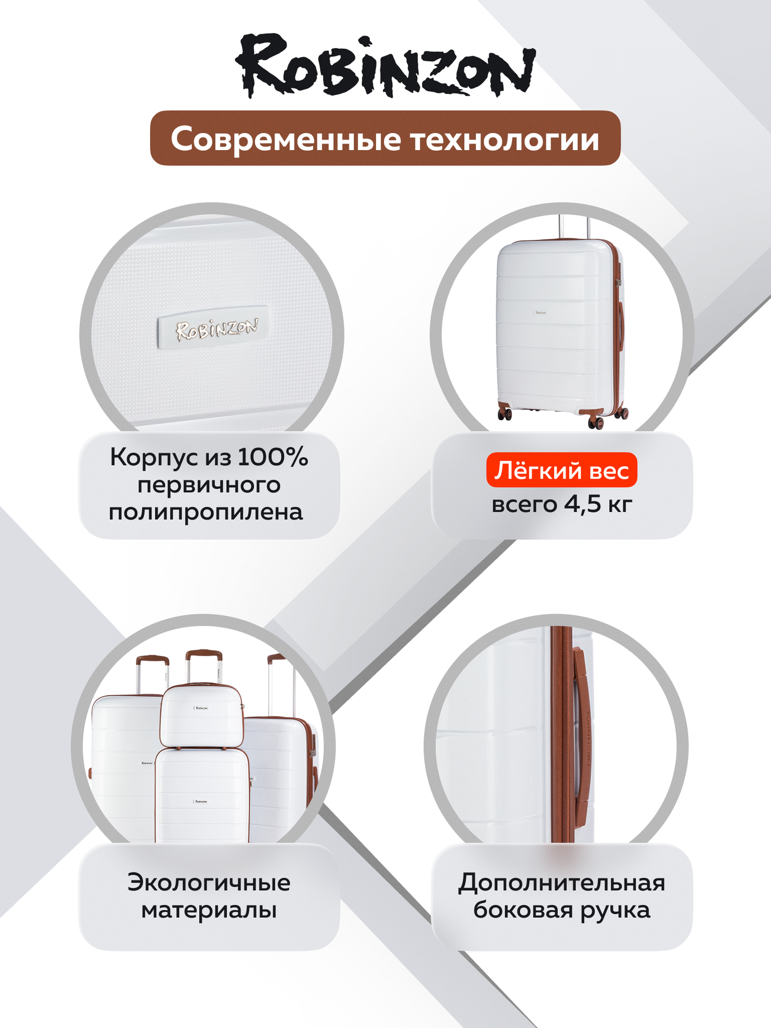Купить Чемодан Robinzon Malta, 98 л, размер L, белый, коричневый