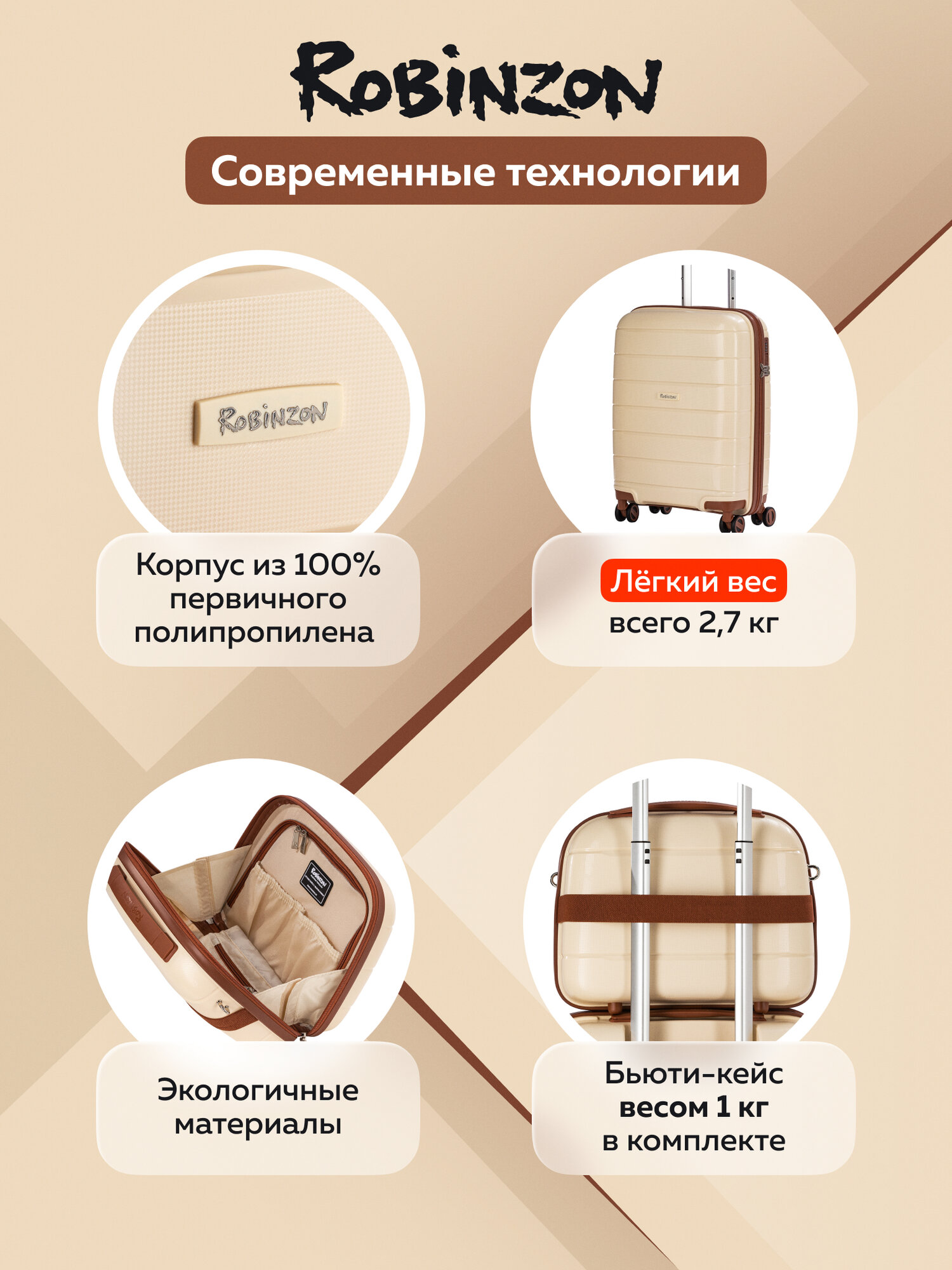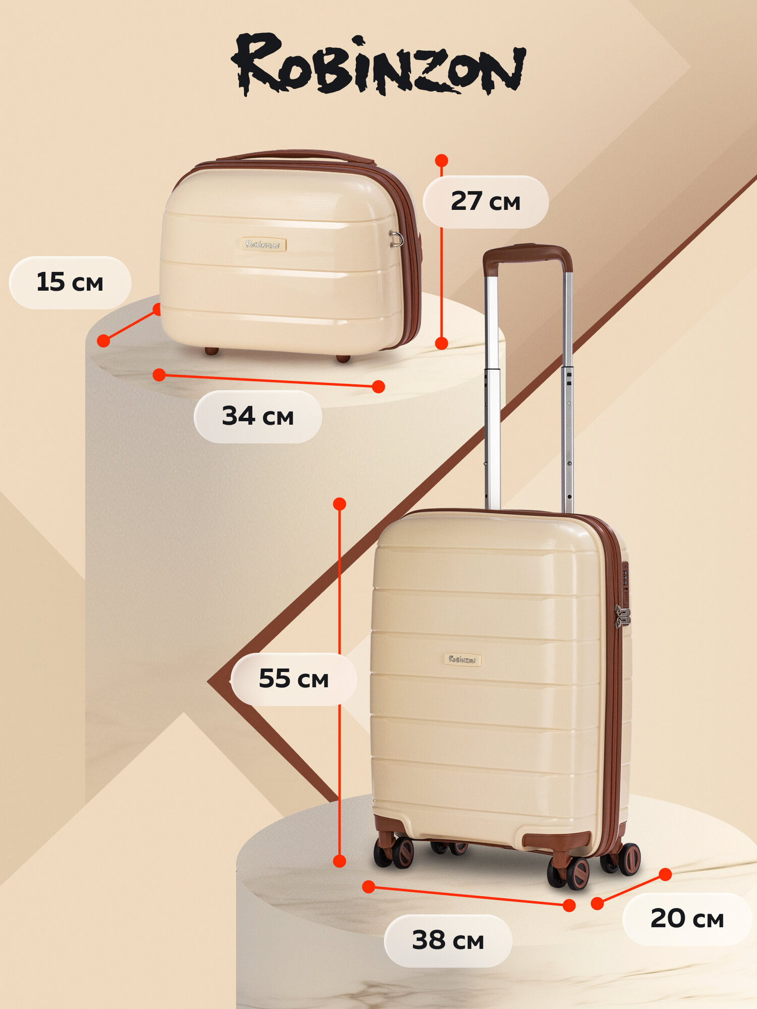 Чемодан и бьюти-кейс Robinzon RP3615 Malta Classic Edition S+BC *54 Champagne