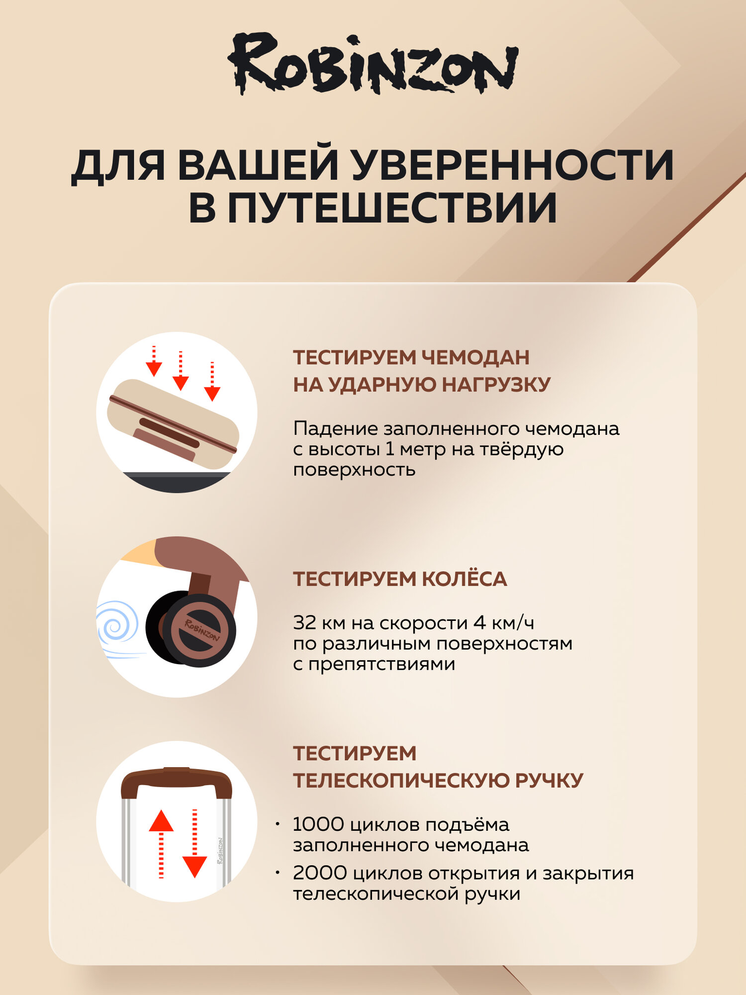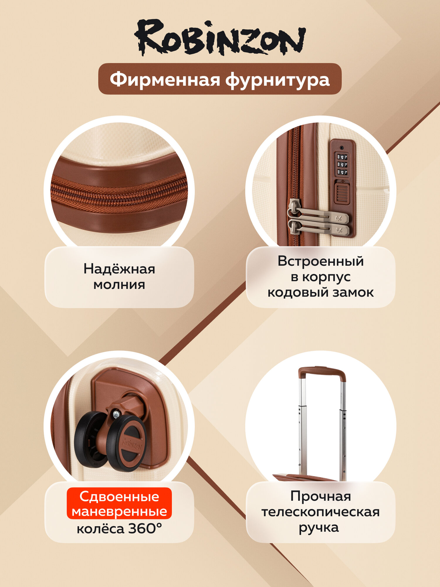 Чемодан Robinzon Malta, 98 л, размер L, бежевый, коричневый