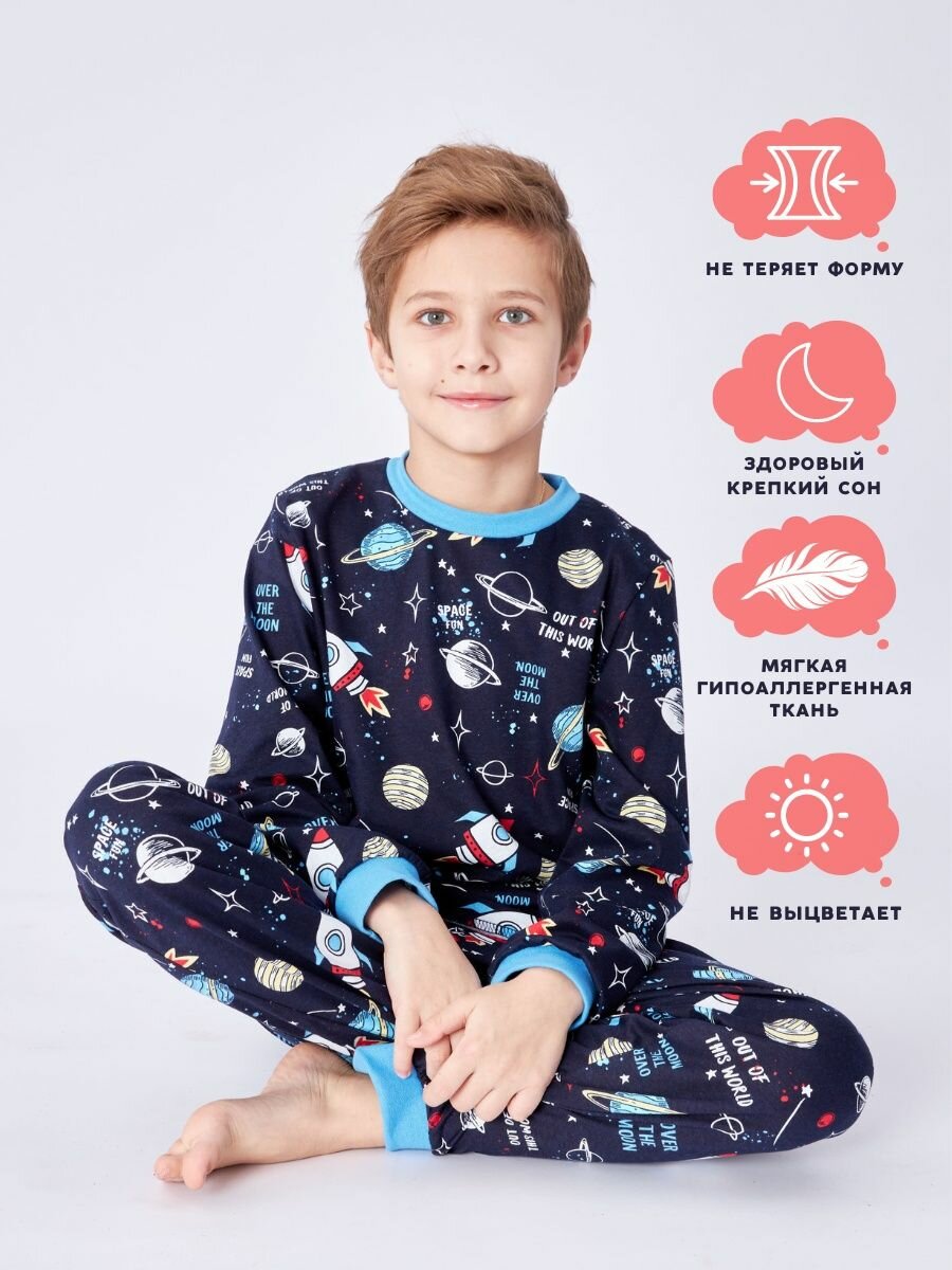 Пижама Веселый малыш, размер 140, синий, 93/17/Ракета