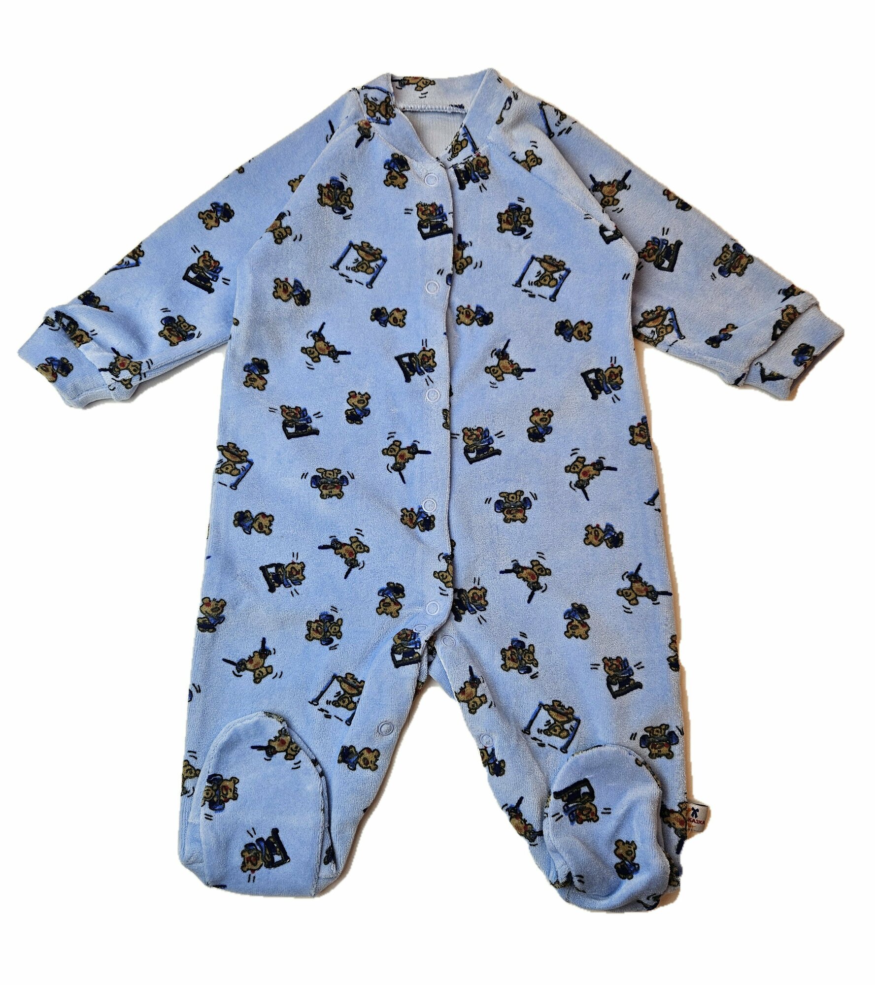 Велюровый комбинезон, Сказка, на голубом мишки, размер 80-52