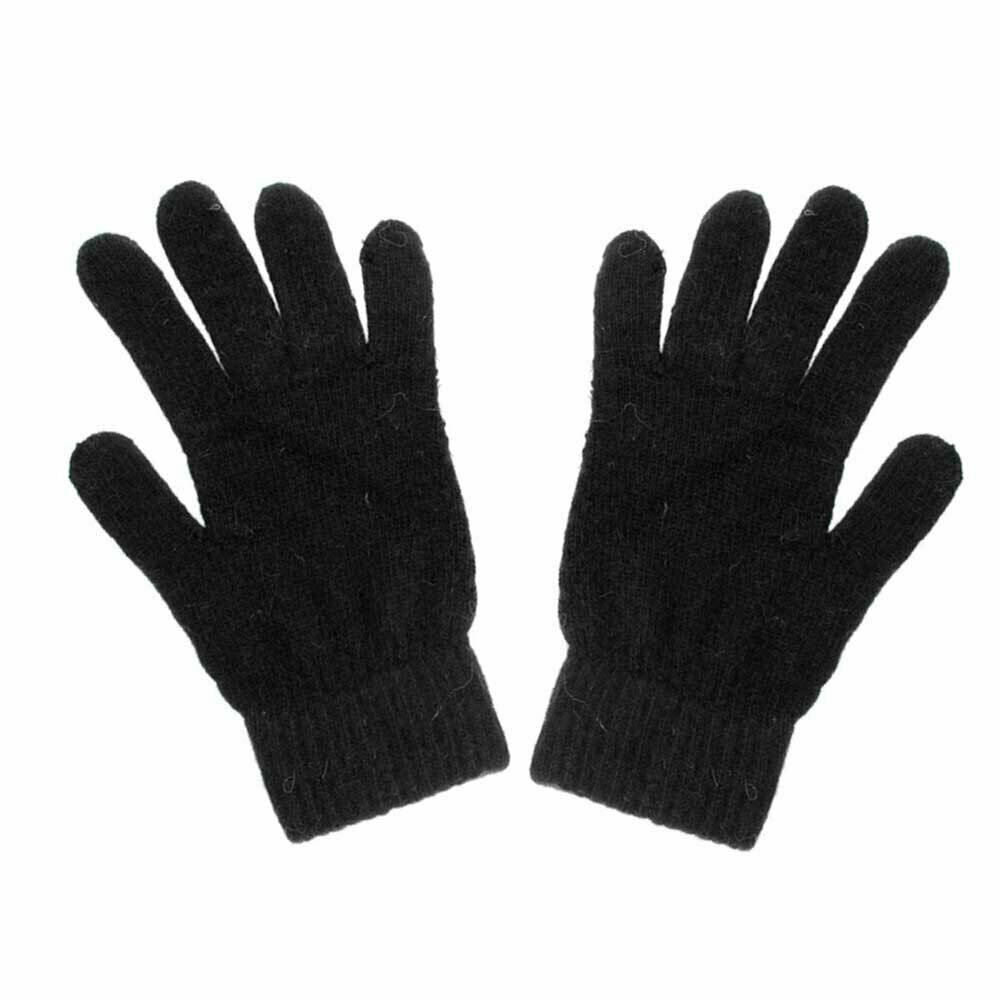 Тёплые шерстяные перчатки черные однотонные