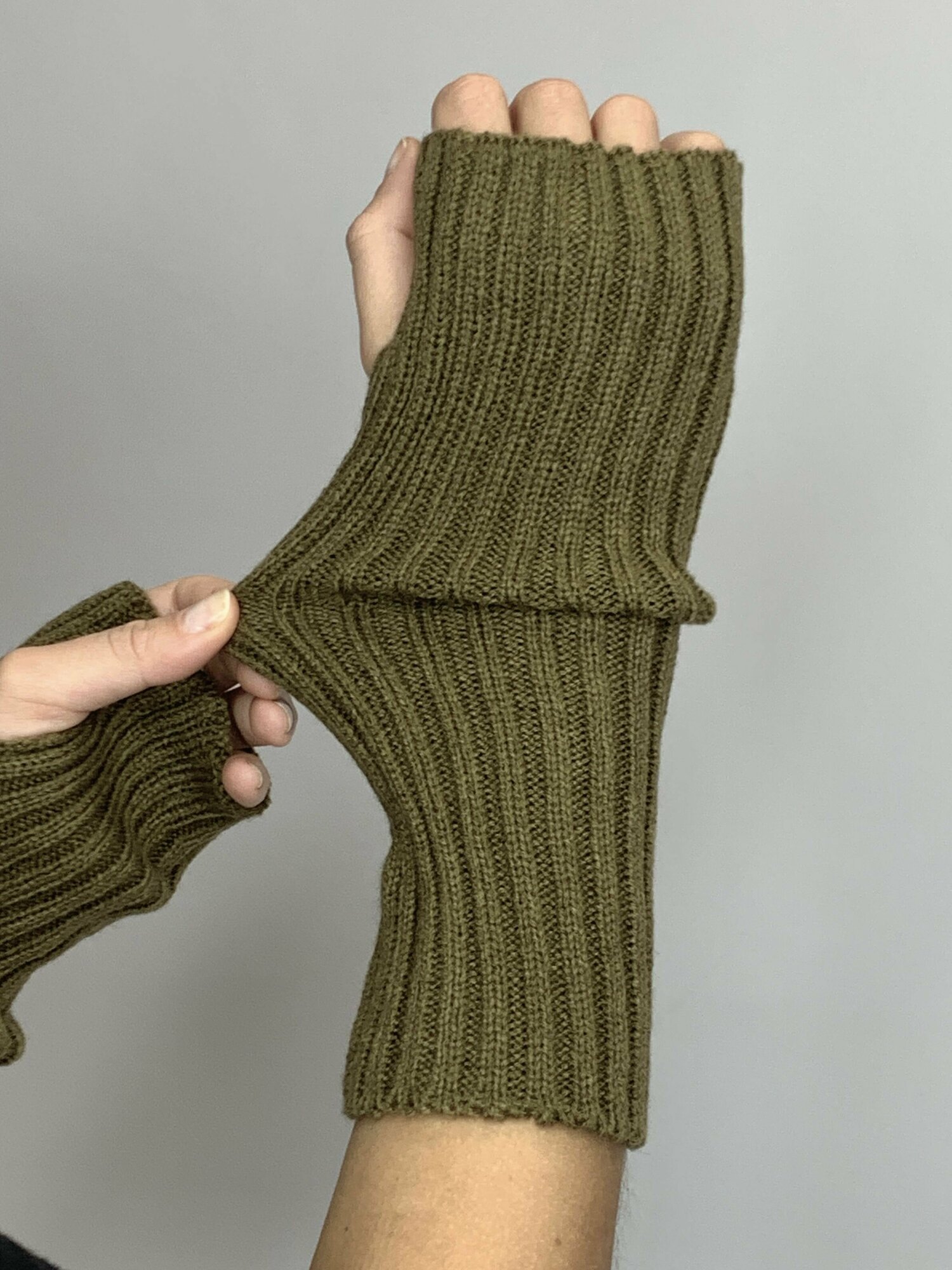 Митенки длинные перчатки без пальцев, светло-серые