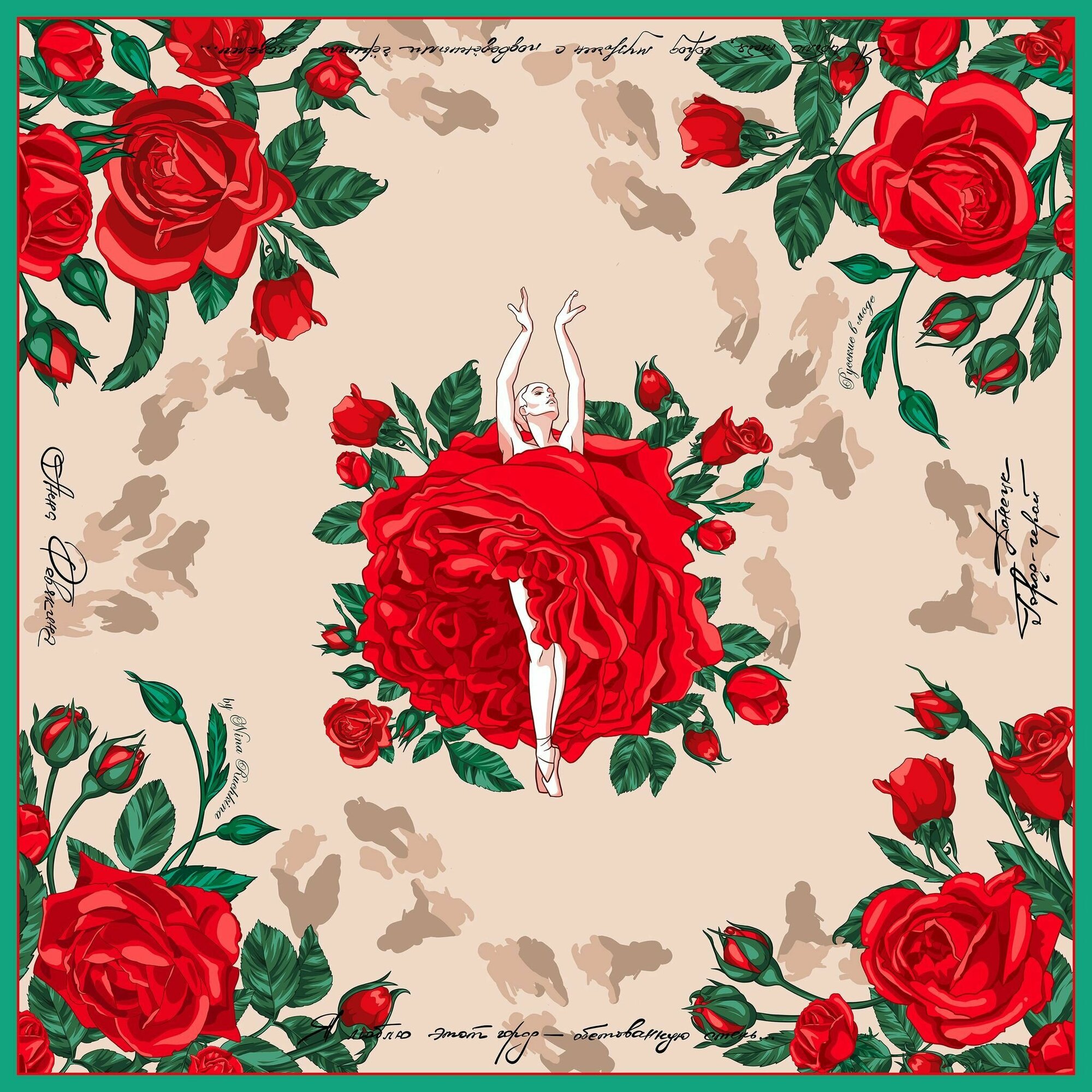 Платок Русские в моде by Nina Ruchkina для женщин,65х65 см, бежевый интересное: