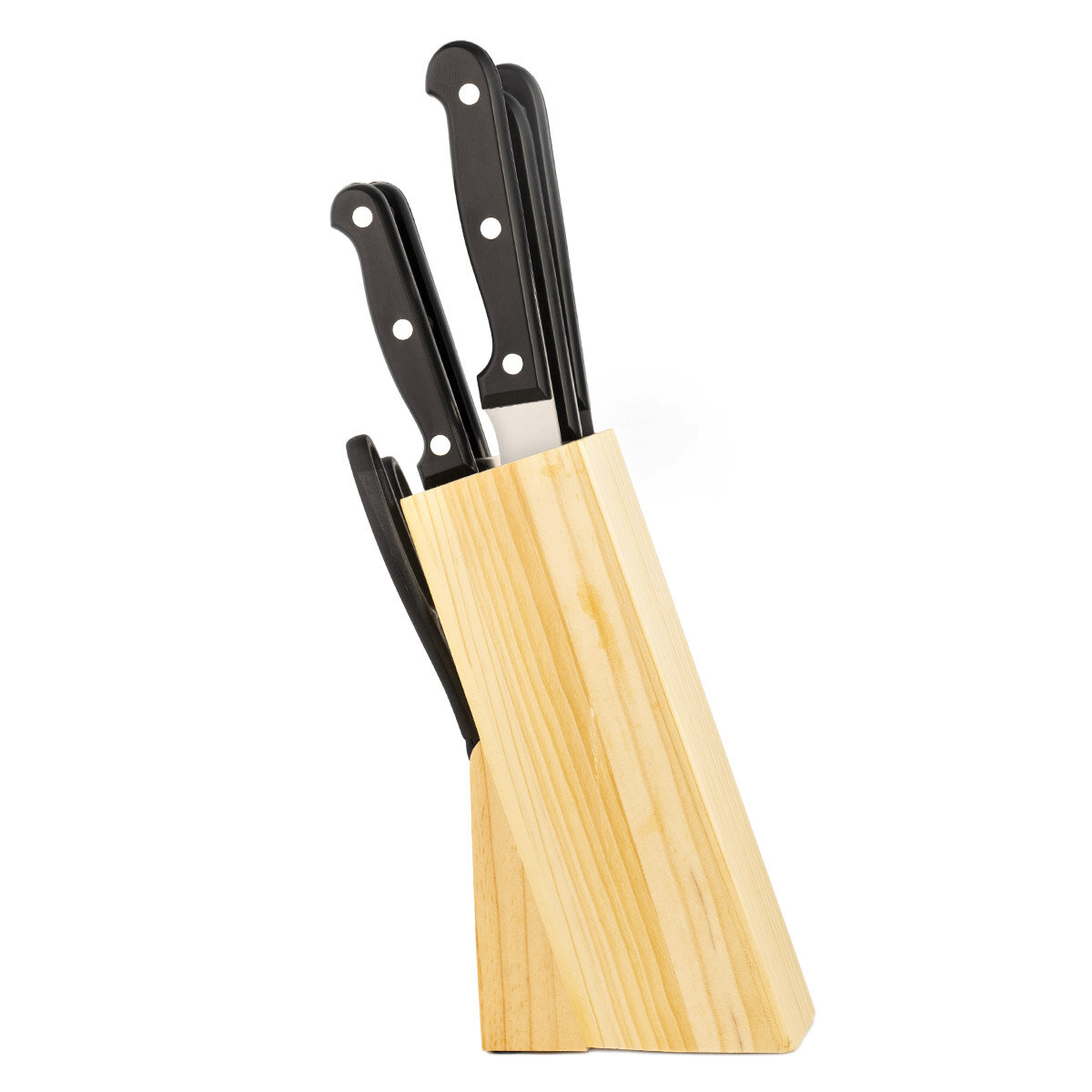 Набор ножей LARA 7 предметов: Подставка (сосна) +5 ножей (Soft touch под дерево) +ножницы LR05-56,