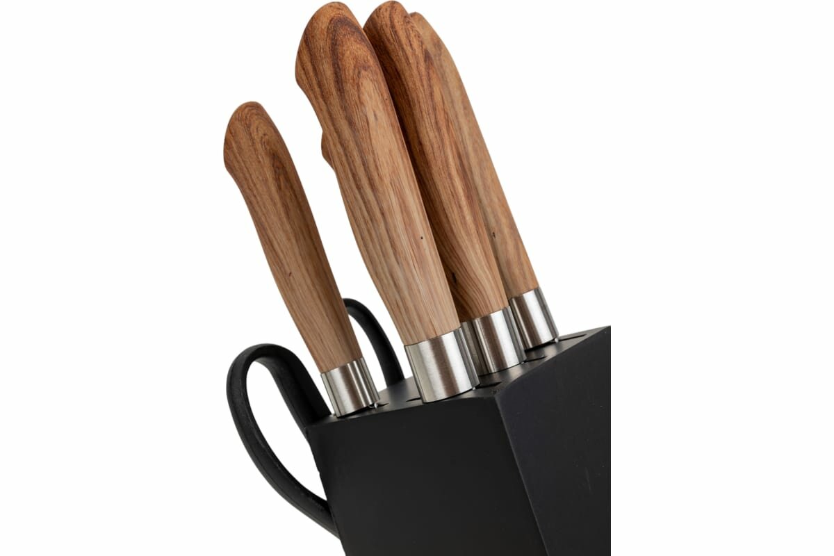 LR05-53 LARA Набор ножей 7 предметов: деревянная подставка + 5 ножей + ножницы