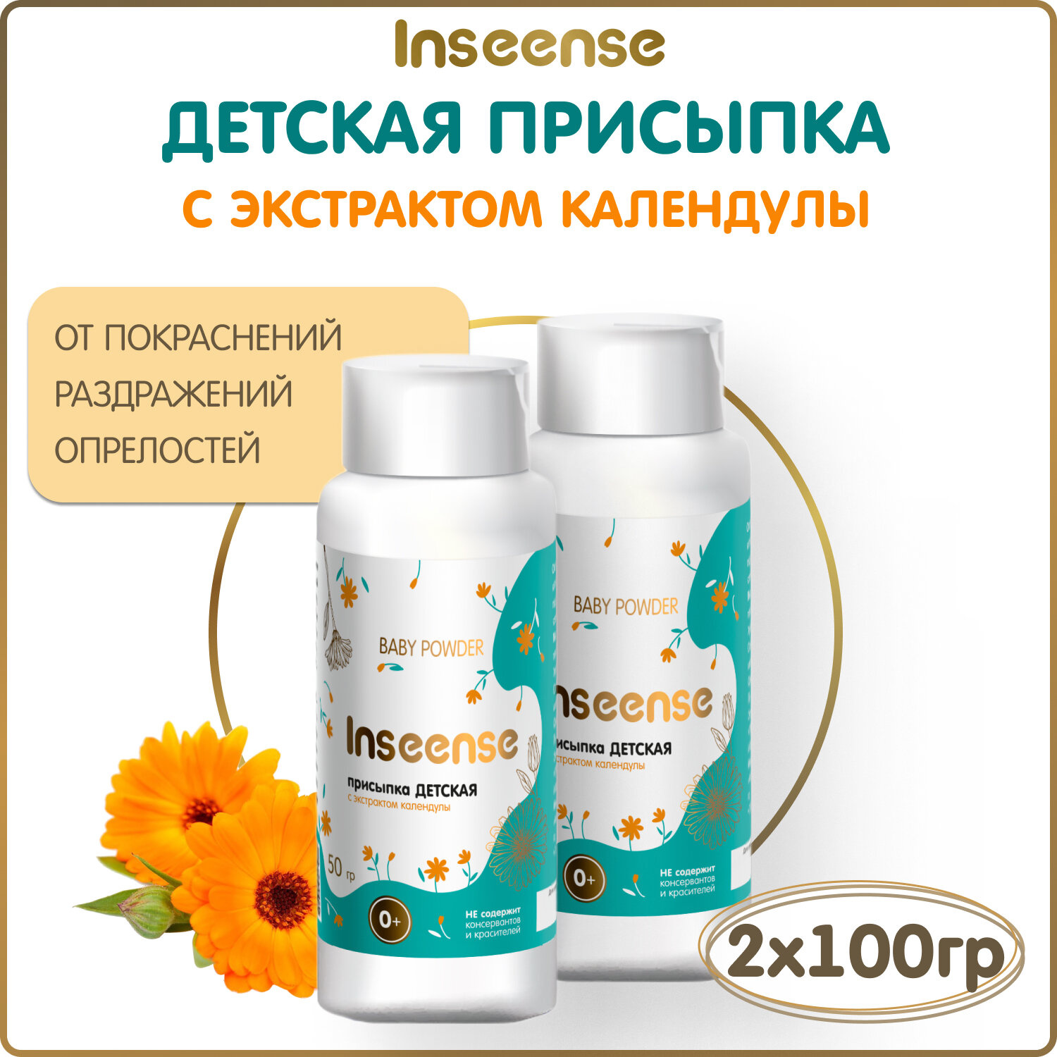 Купить Присыпка детская Inseense с экстрактом календулы 2 штуки по 100 гр