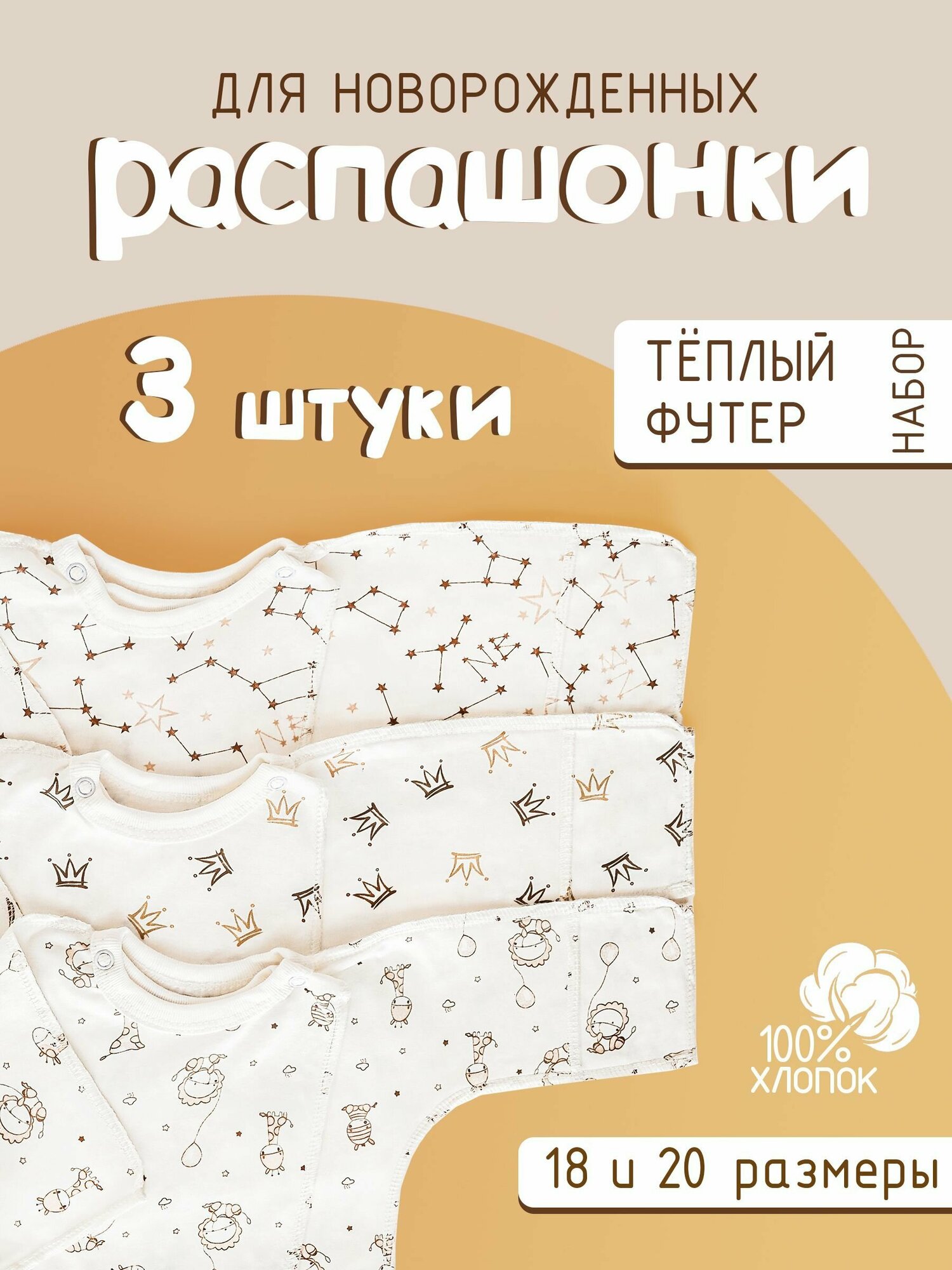 Распашонка Карапуз Антошка, комплект из 3 шт., размер 62-20, коричневый, бежевый интересное: