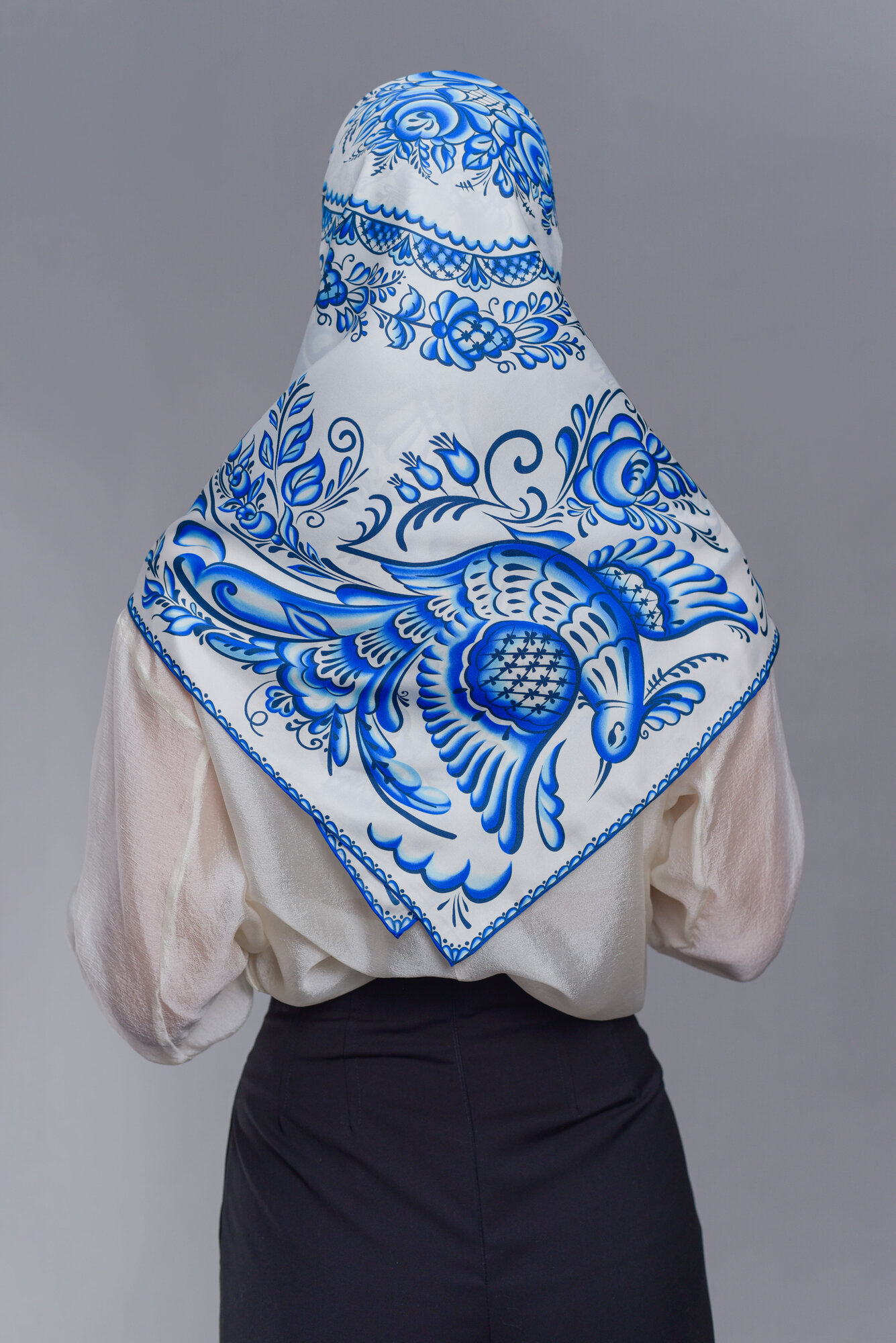 Купить Платок Русские в моде by Nina Ruchkina промыслы для девочек и женщин,90х90 см, синий