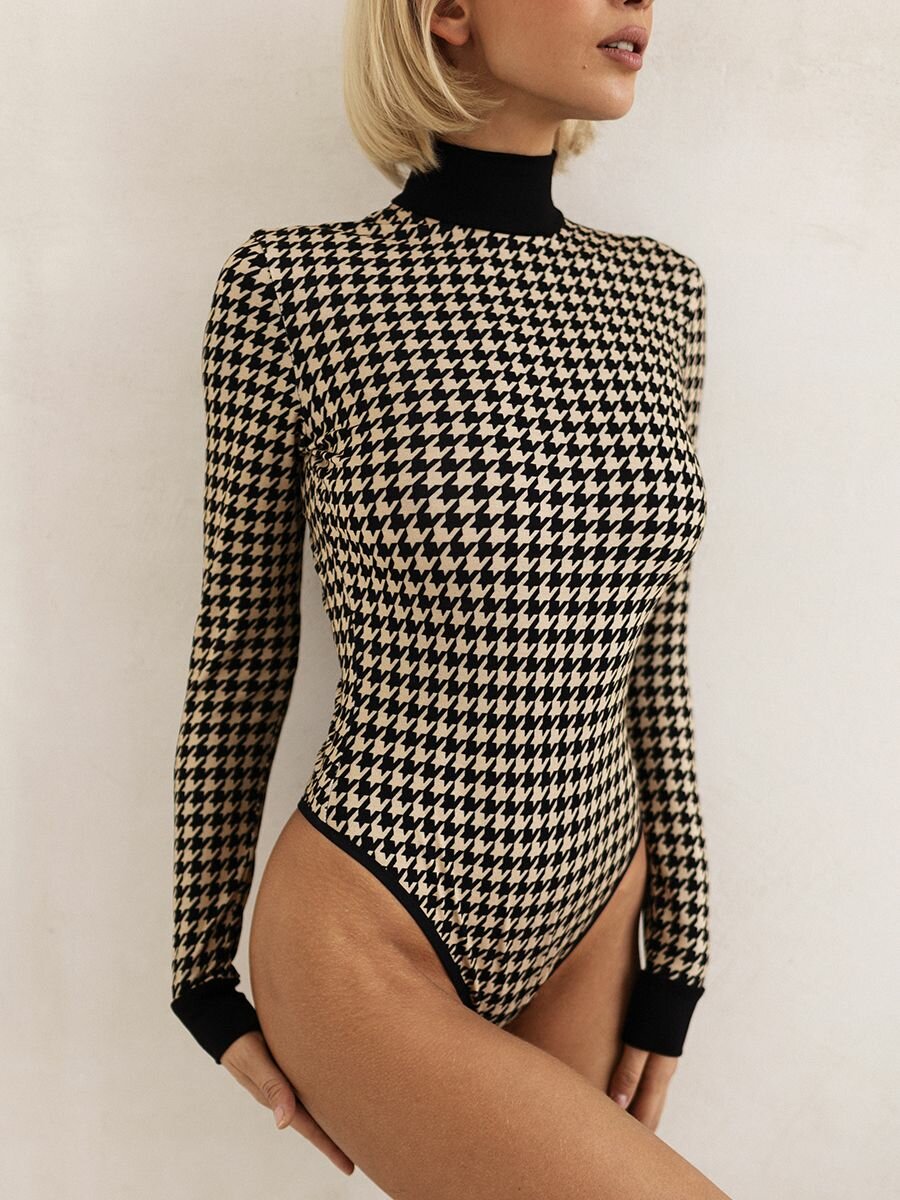 Боди с высоким вырезом бедра и длинным рукавом твое, арт. 102862, черный, S