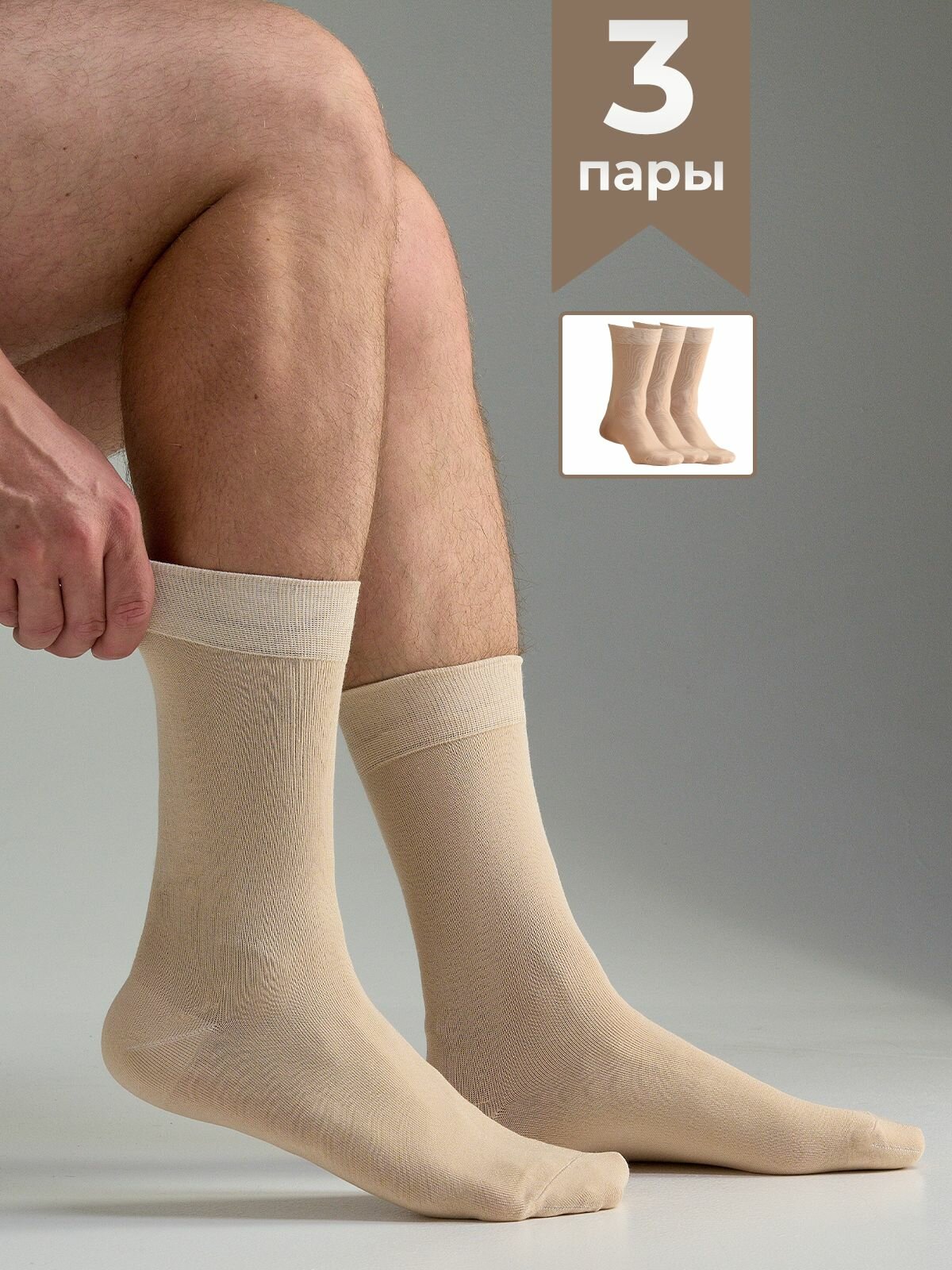 Носки мужские Годовой запас, Бамбук, 3 пары, бежевые, 25 (39-41)