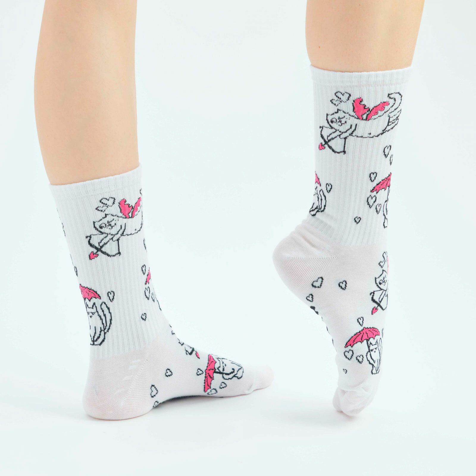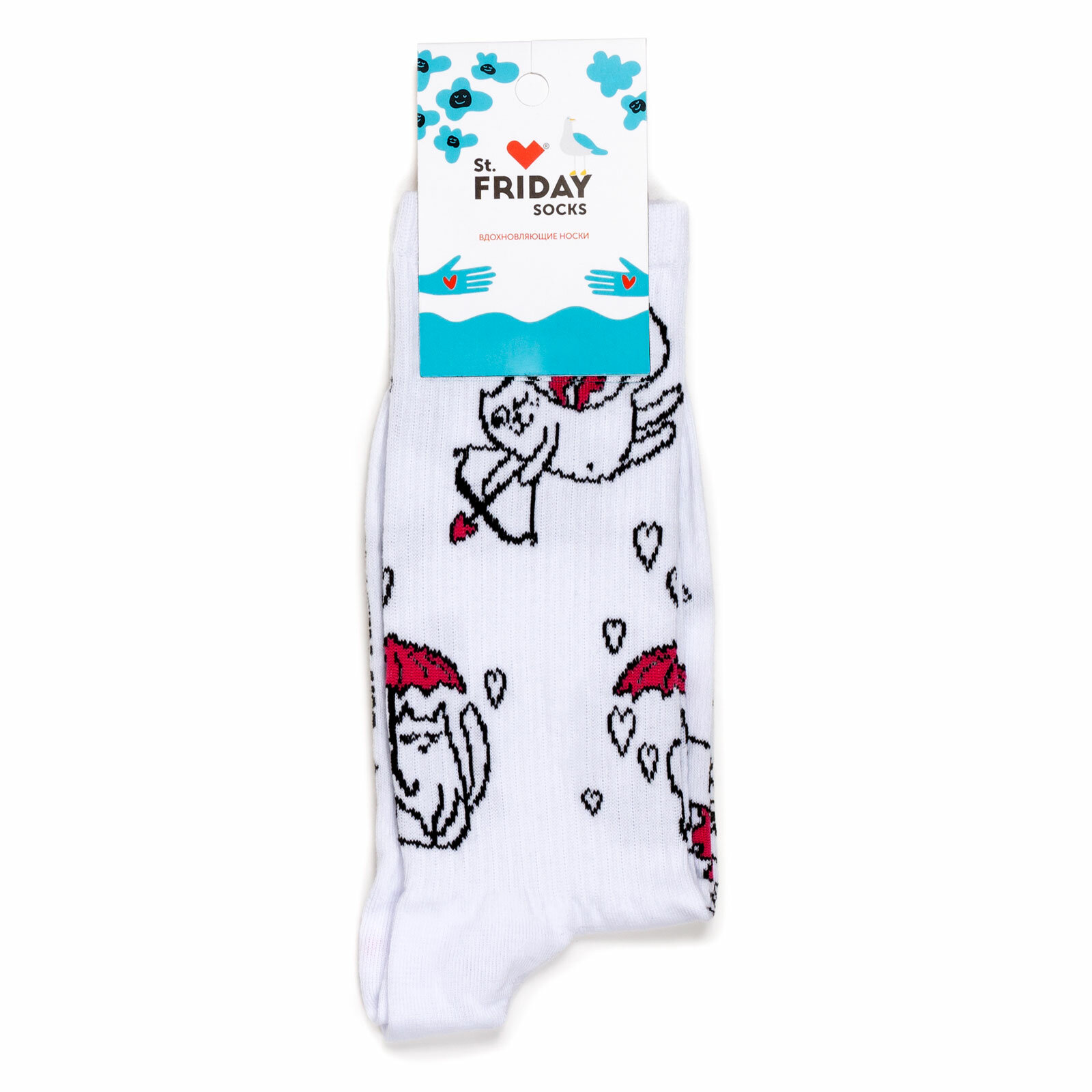 Носки St. Friday Унисекс Носки с надписями и рисунками- Купидон кот, размер 38-41, белый, красный, серый