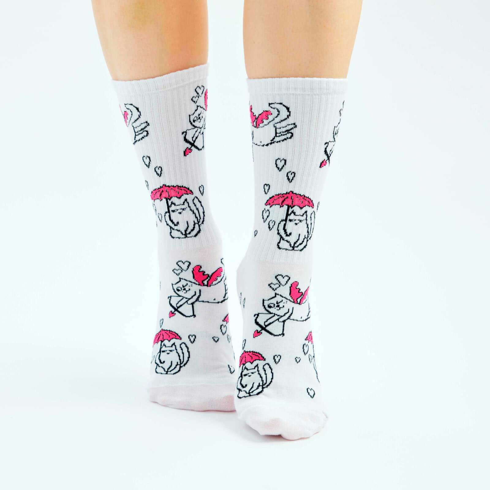 СохранитьНоски St. Friday Унисекс Носки с надписями и рисунками- Купидон кот паттерн, размер 38-41, розовый, черный, белый, красный интересное: