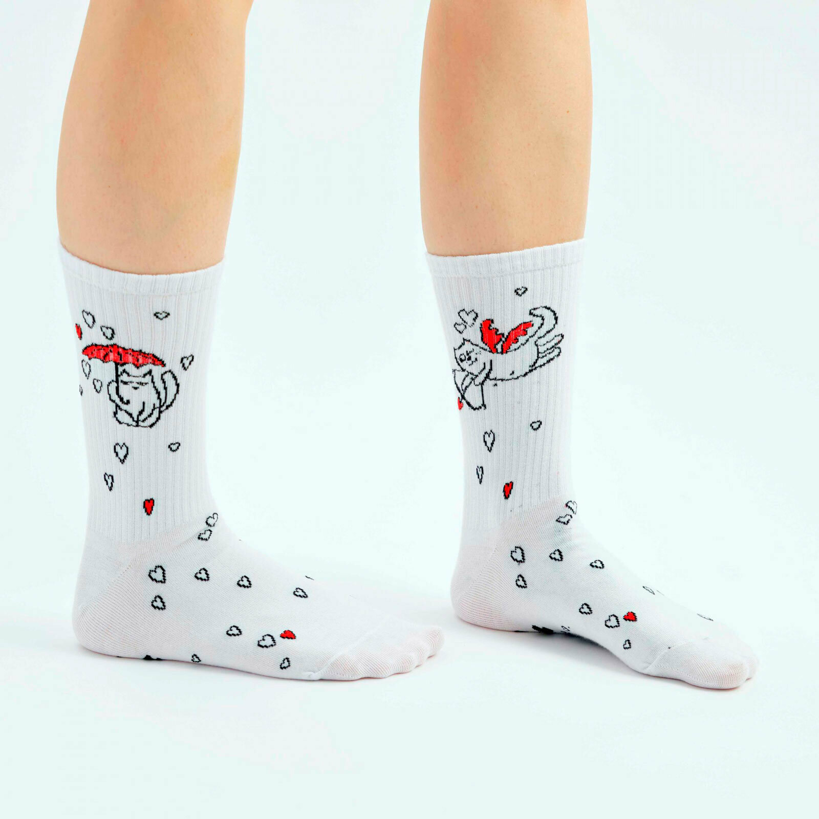 Купить Носки St. Friday Унисекс Носки с надписями и рисунками- Купидон кот, размер 38-41, белый, красный, серый