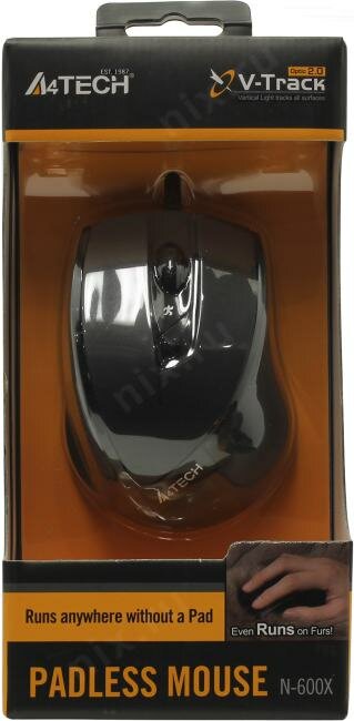 Мышь A4Tech n-600x-1, черный, технология v-track, работает на любой поверхности, 1600dpi .