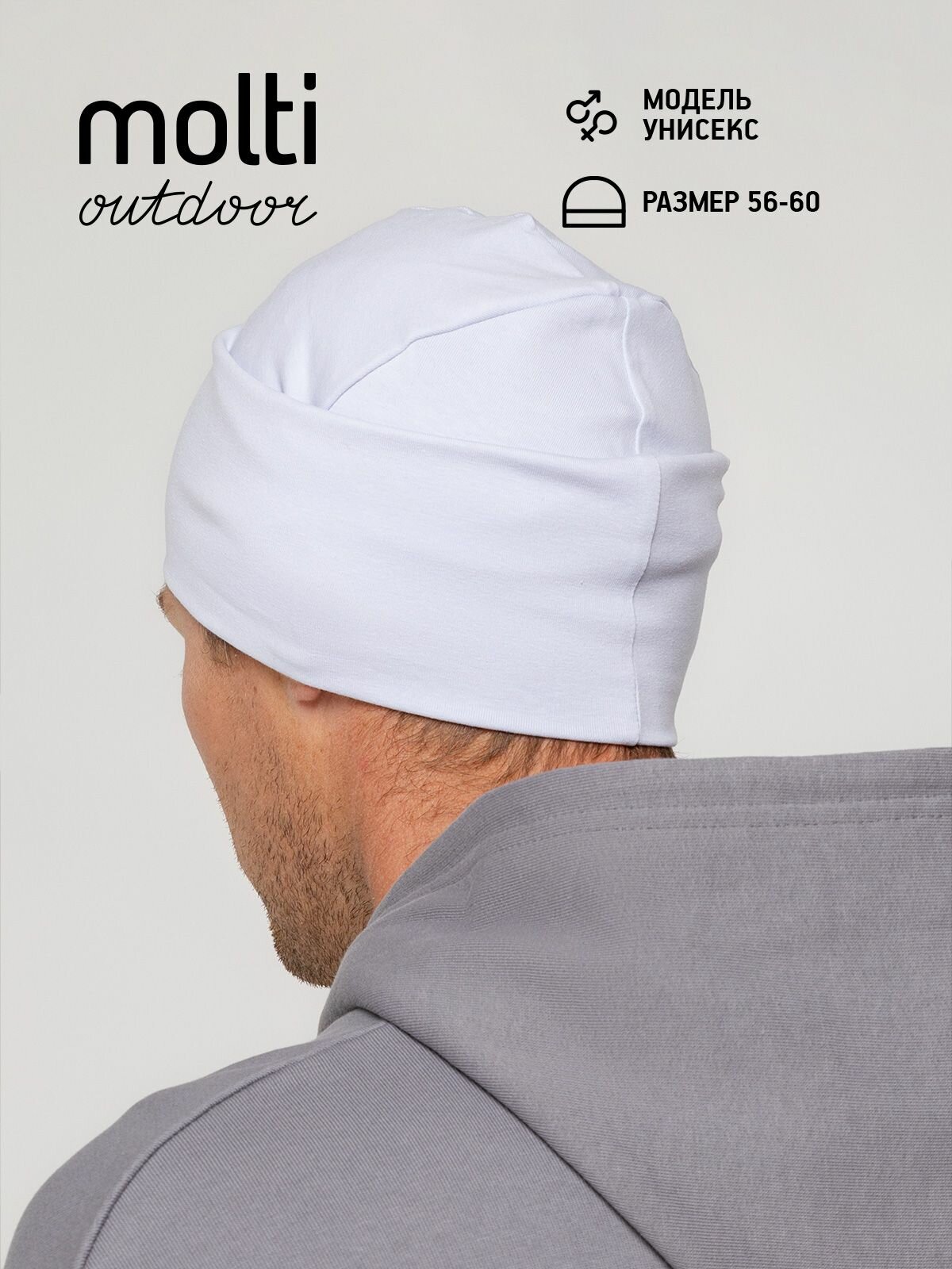 Купить Шапка бини molti для мужчин и женщин, размер 56-60, белый