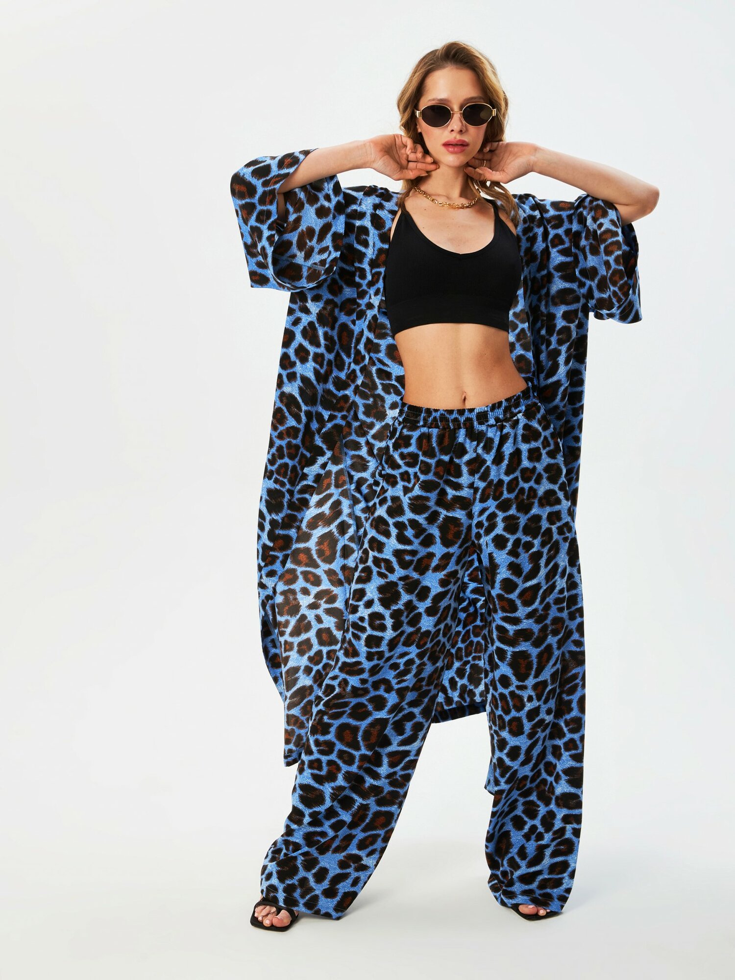 Комплект халат и брюки Bestia Robpants синий принт Женский 44 размер