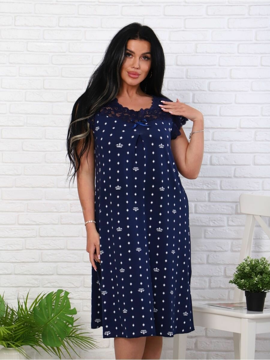 Домашняя ночная сорочка из вискозы с кружевом, размер 74