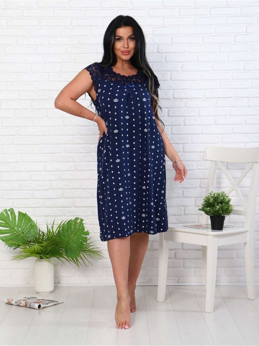 Домашняя ночная сорочка из вискозы с кружевом, размер 70