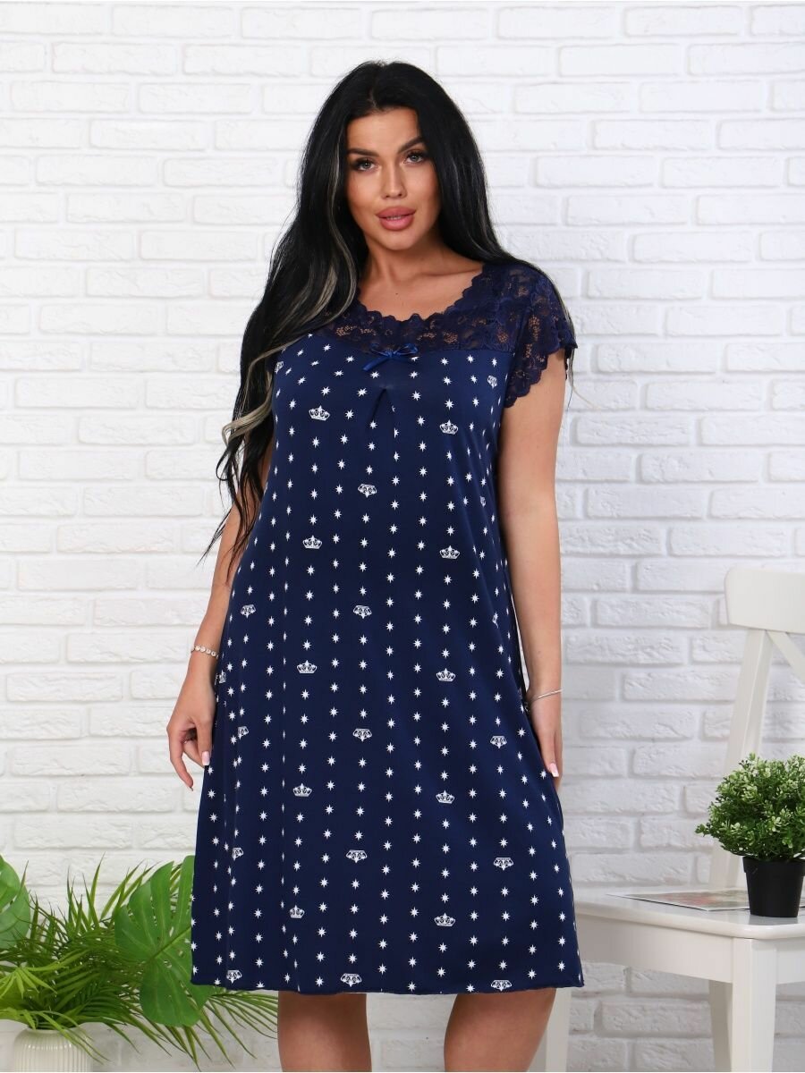 Домашняя ночная сорочка из вискозы с кружевом, размер 64