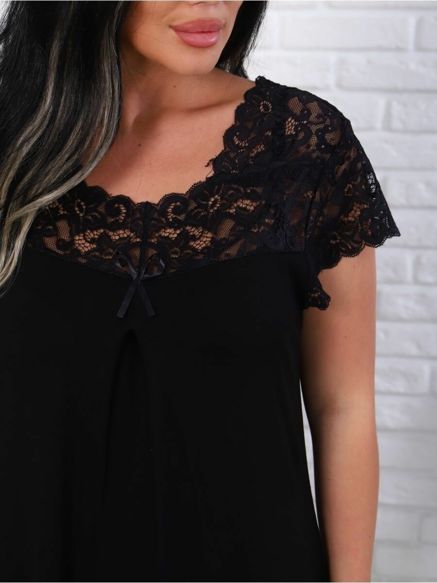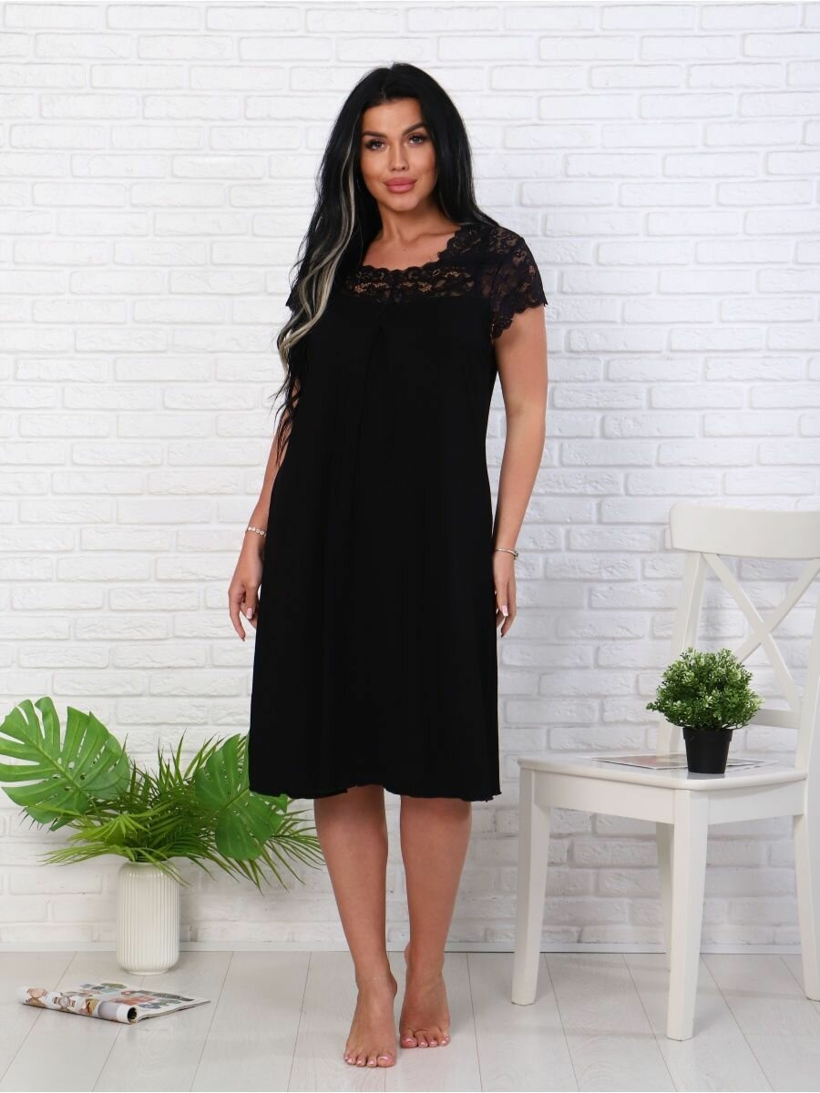 Домашняя ночная сорочка из вискозы с кружевом, размер 56