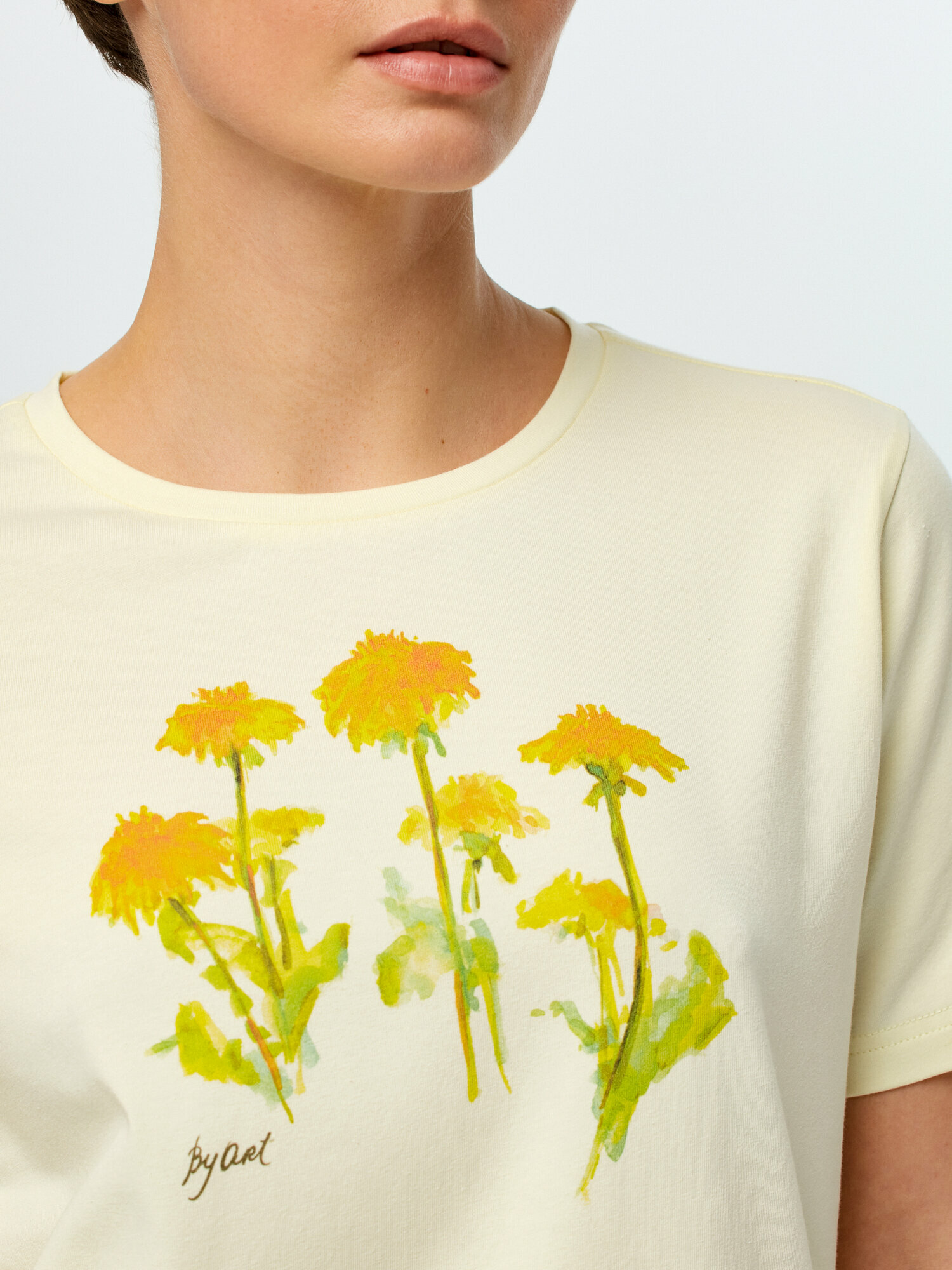Футболка By Art BOYKO YULIANA женская, хлопок, с авторским принтом Одуванчики, размер 40, ванильный