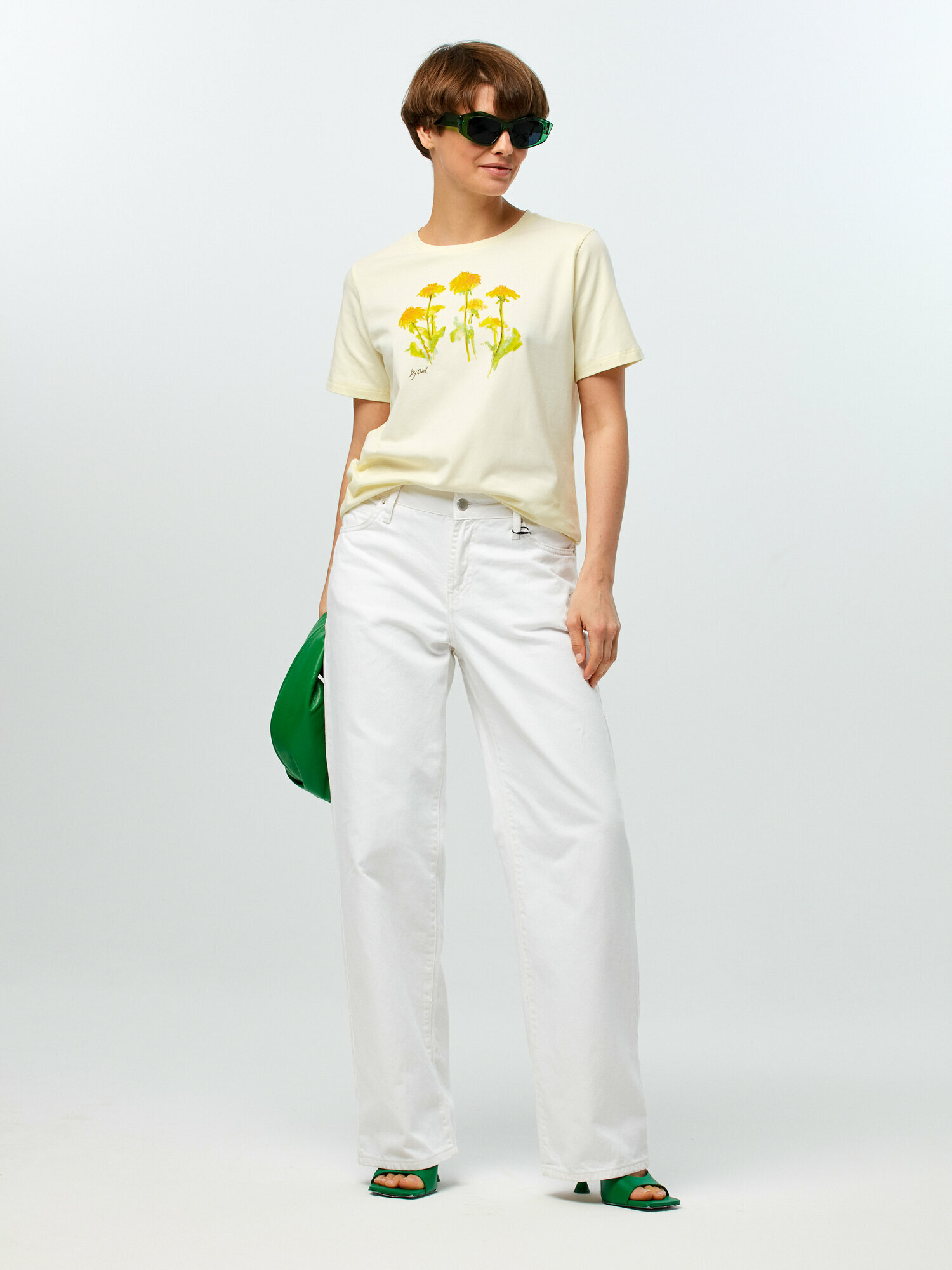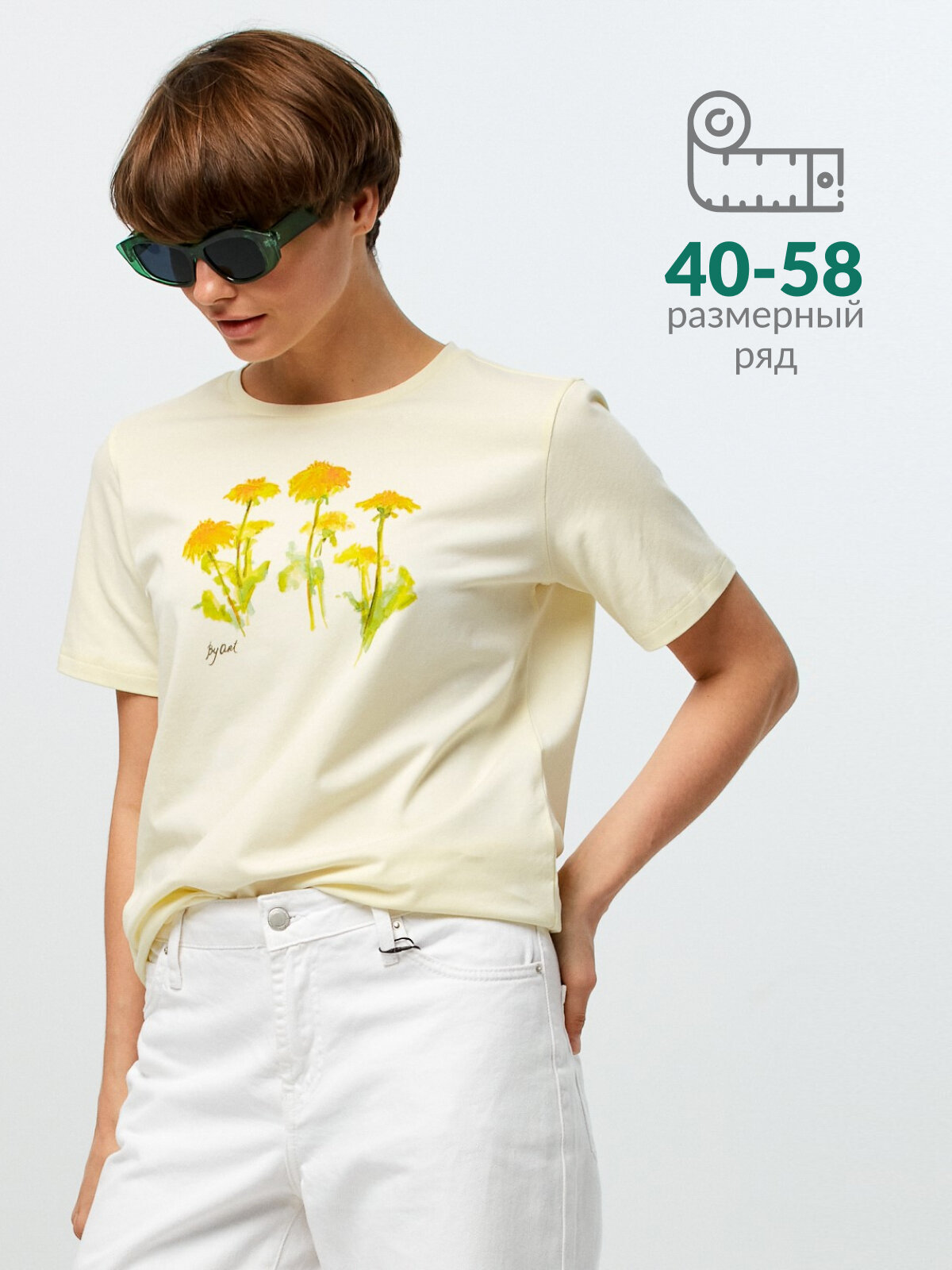 Футболка By Art BOYKO YULIANA женская, хлопок, с авторским принтом Одуванчики, размер 48 ванильный