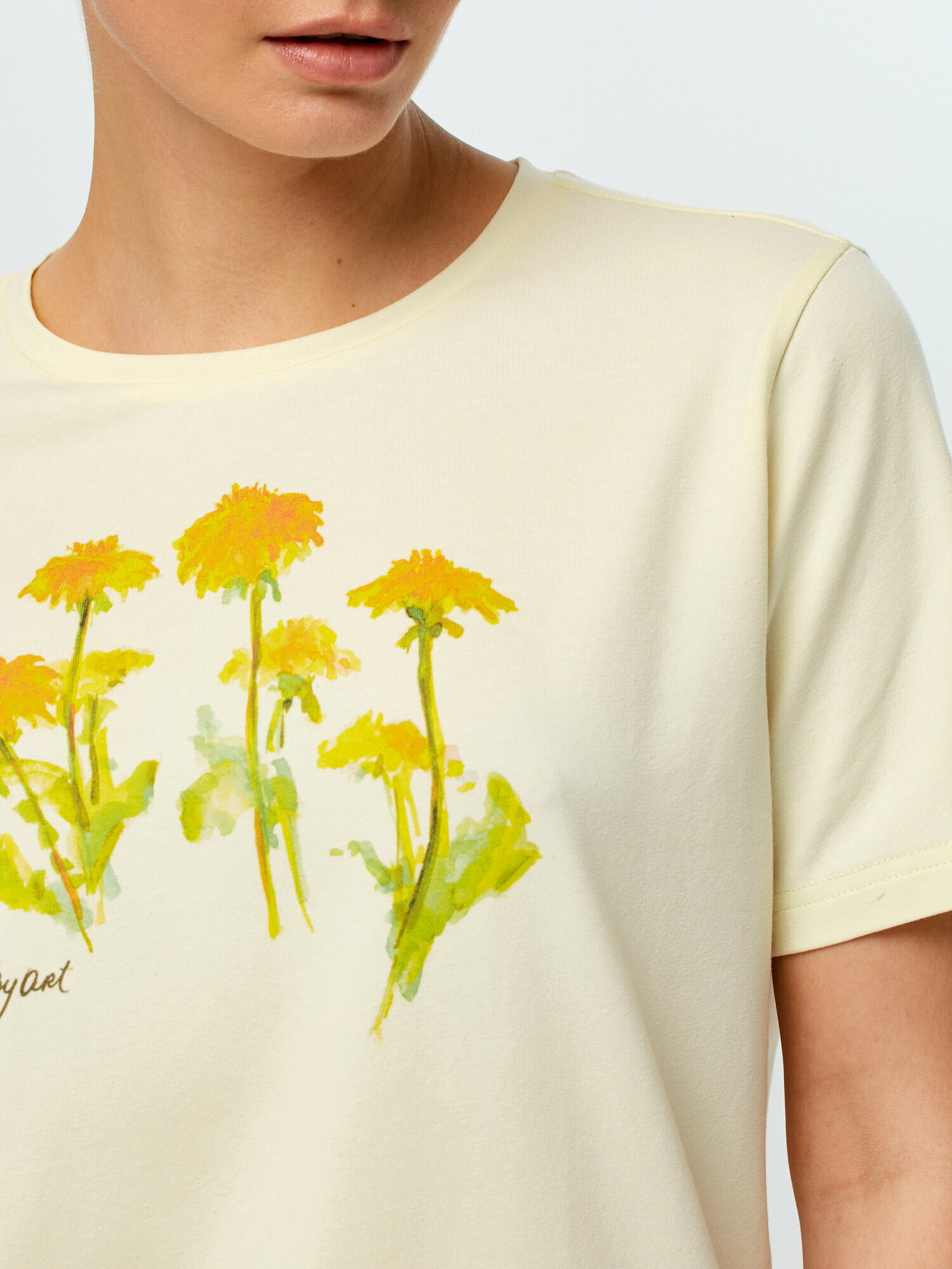Футболка By Art BOYKO YULIANA женская, хлопок, с авторским принтом Одуванчики, размер 42, ванильный