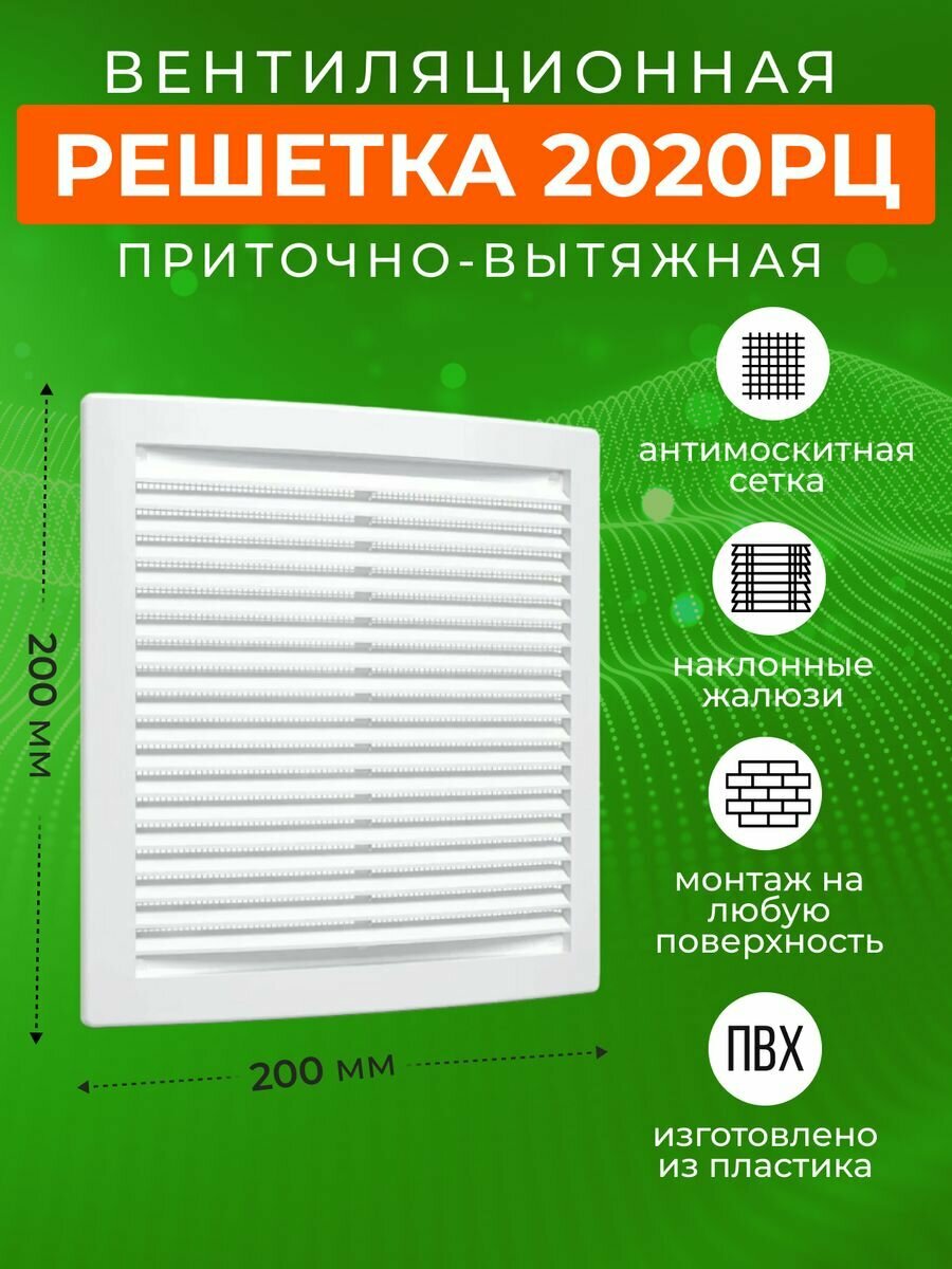 Решетка вентиляционная 200х200 с сеткой 2020РЦ пластик белая
