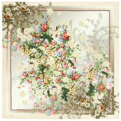 Шелковый платок Павловопосадские платки Винтаж 2, бежевый, 89 х 89 см