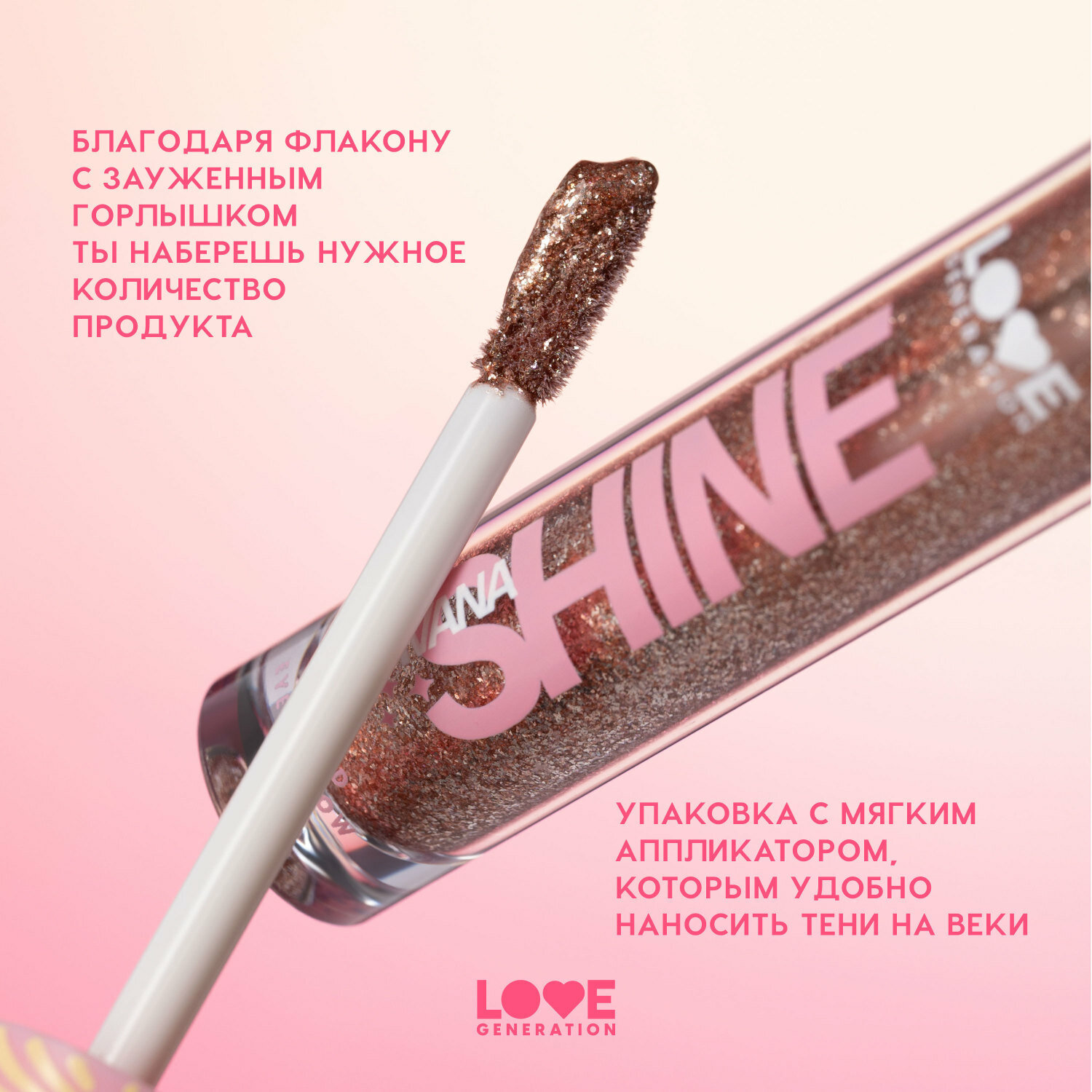 LOVE GENERATION Жидкие тени для век Nirvana сияющие, 2,8 мл, 02 Розовый