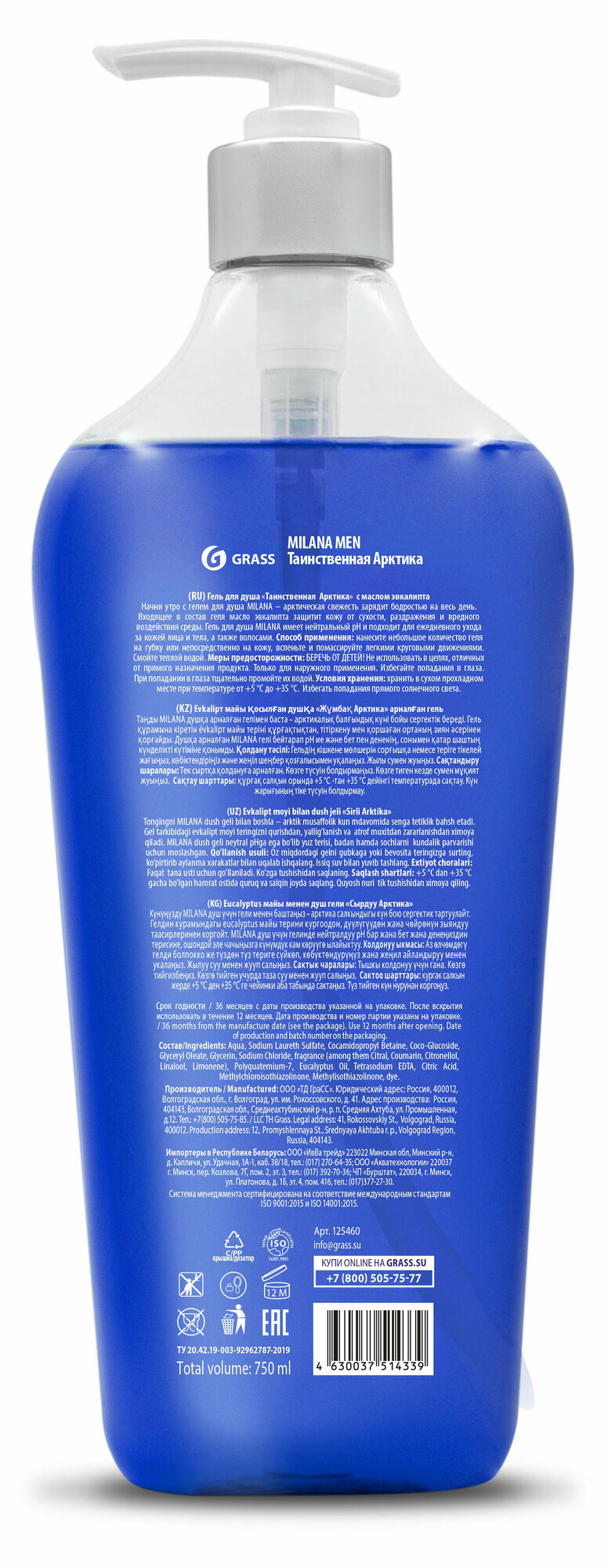 Купить Гель для душа - пенка 750 мл GRASS Milana Таинственная арктика с маслом эвкалипта 125460