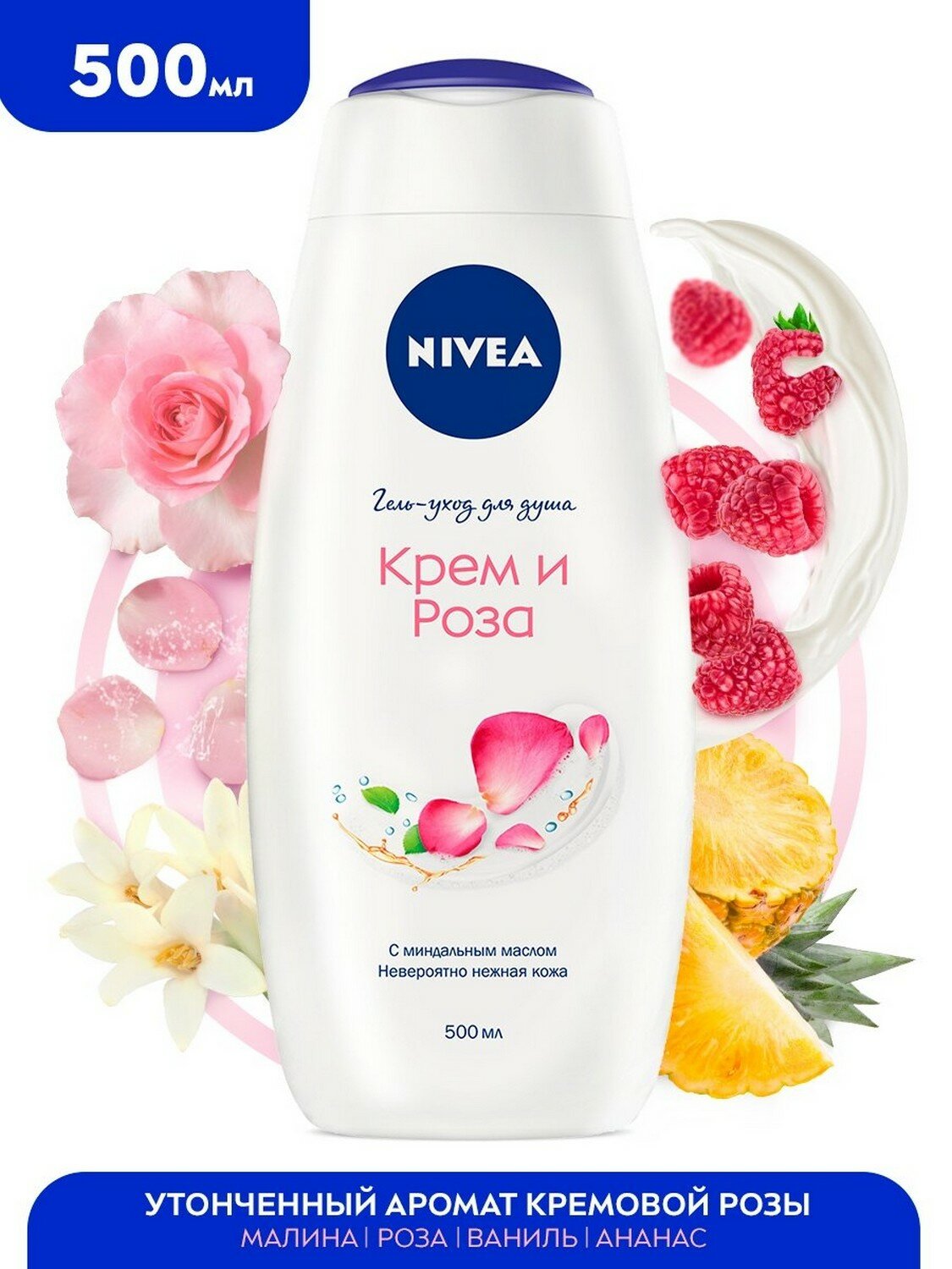 Гель-уход для душа Nivea Крем и роза, с маслом миндаля, 500 мл