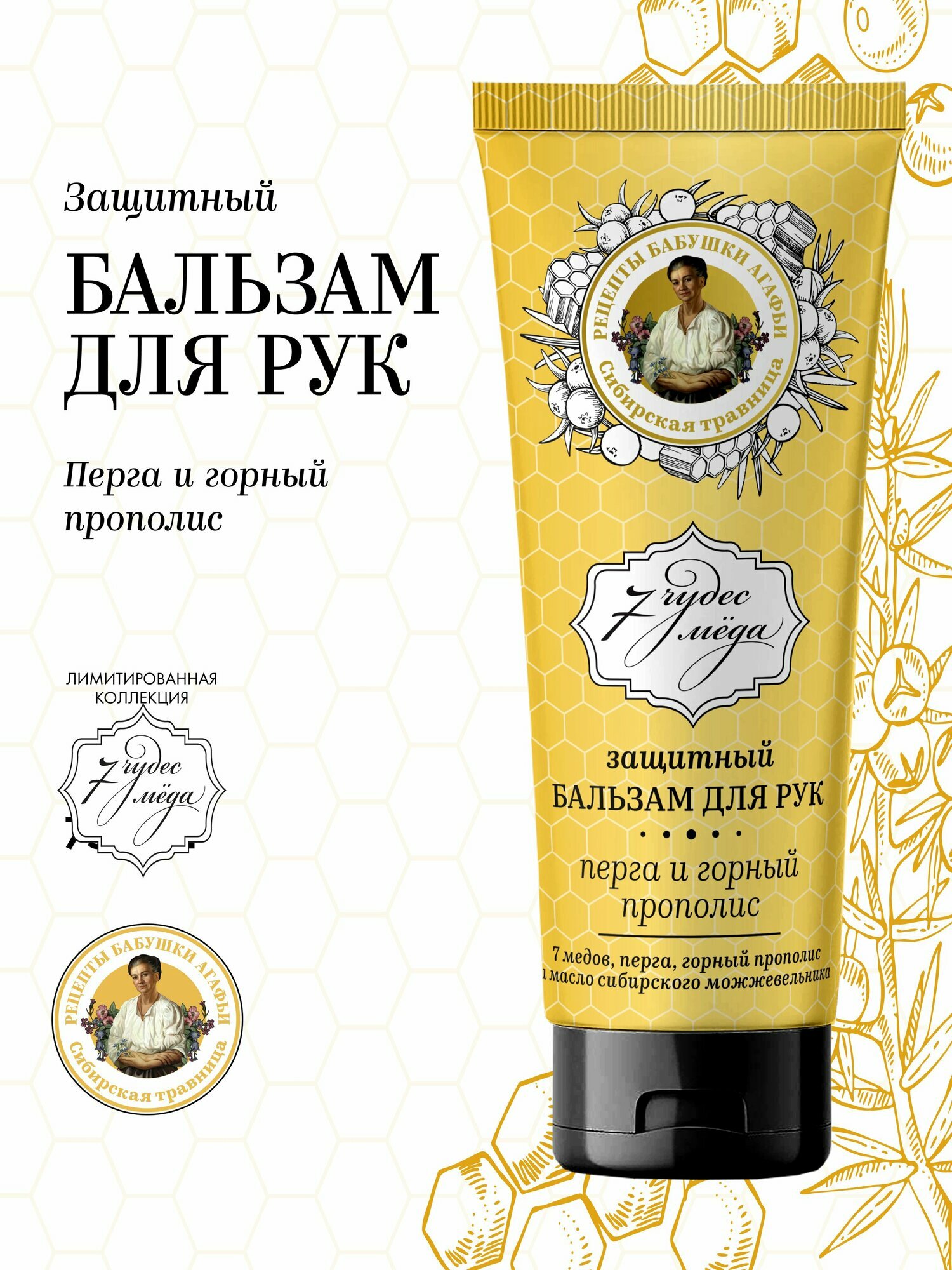 Бальзам для рук Рецепты бабушки Агафьи Сибирская травница 7 чудес мёда защитный Перга и горный прополис, 75 мл