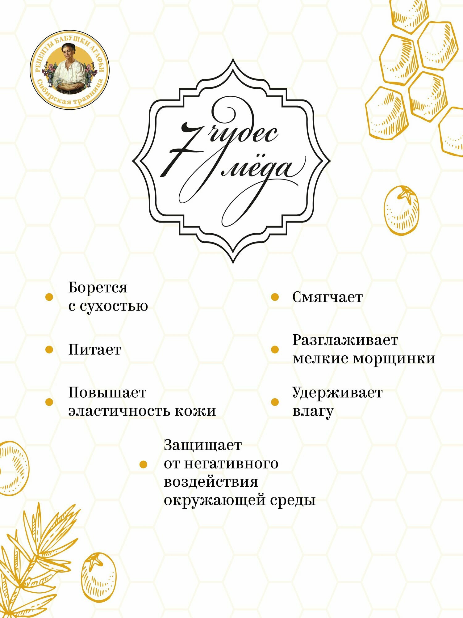 | Cостав | Hypericum Perforatum Flower Water (настой соцветий зверобоя) with infusions of Mel (гречишный мёд, липовый мёд, кедровый мёд, акациевый мёд, донниковый мёд, кипрейный мёд, дягилевый мёд), Pollen Extract (перга), Propolis Extract (экстракт горного прополиса), Juniperus Communis Wood Oil (масло можжевельника), Caprylic/Capric Triglyceride, Triticum Vulgare Germ Oil, Butyrospermum Parkii Butter, Dicaprylyl Ether, Isododecane, Cetearyl Alcohol, Glyceril Stearate, Stearic Acid, Glycerin, Panthenol (провитамин В5), Tocopherol (витамин Е), Bisabolol (бисаболол), Saccharide Isomerate, Sodium Hyaluronate, Sodium Cetearyl Sulfate, Citric Acid, Benzyl Alcohol, Ethylhexylglycerin, Parfum, CI 15985, CI 19140. |