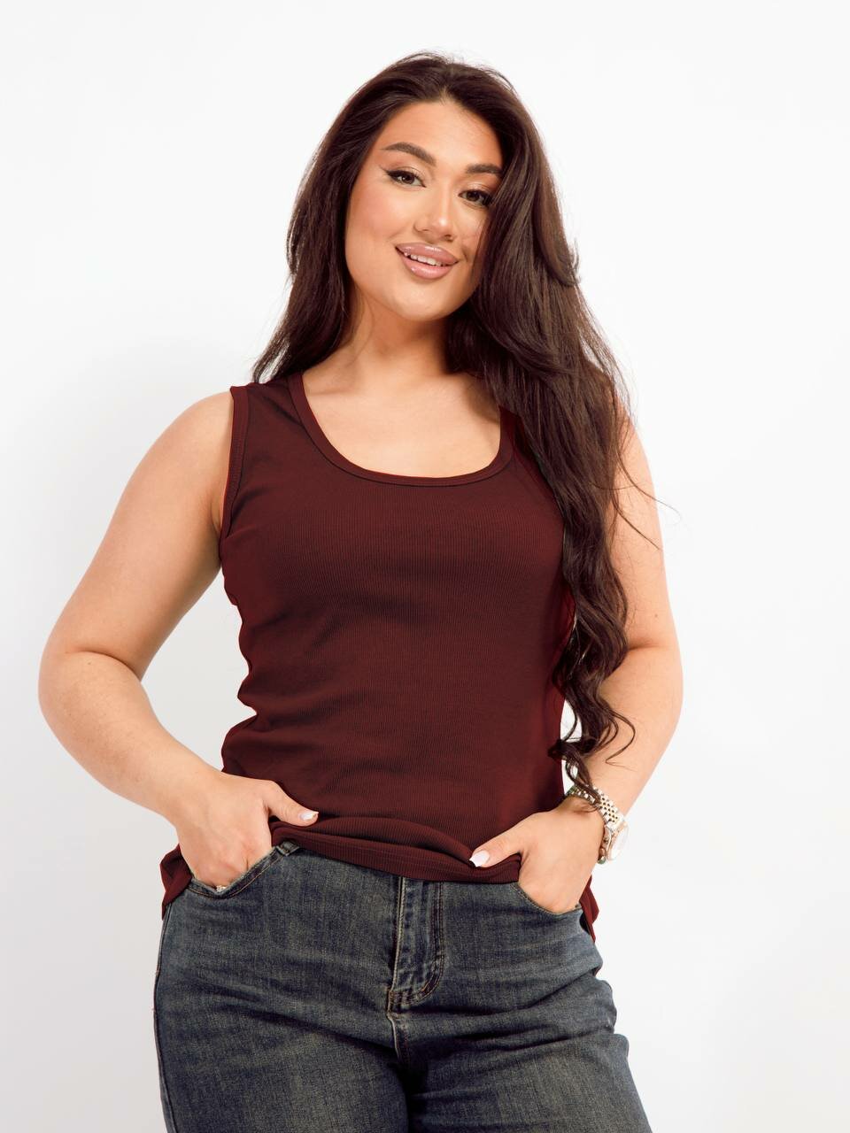 Майка Интерлок, 1 шт., размер 100, бордовый/винный
