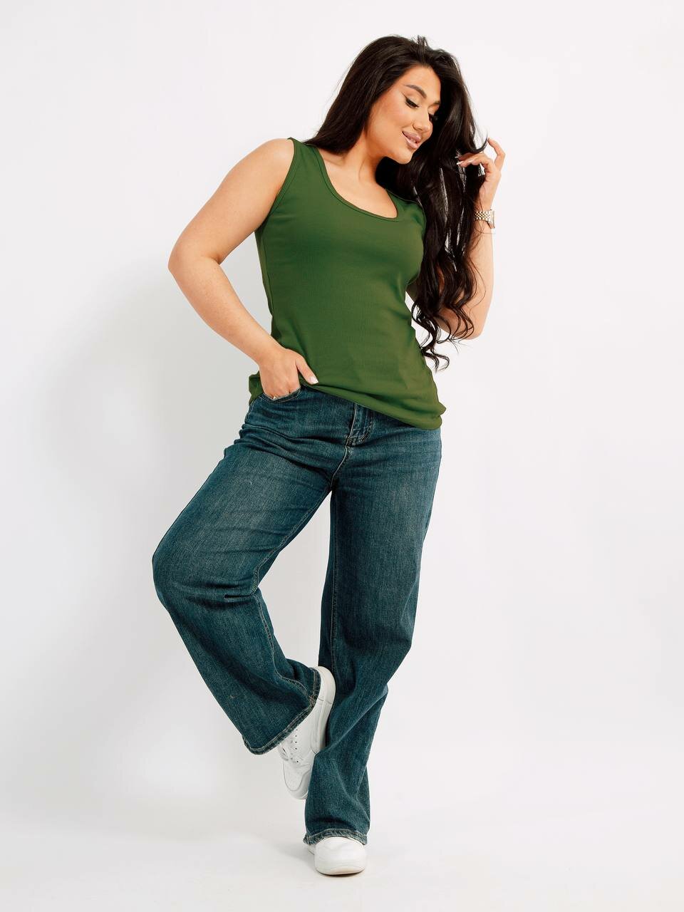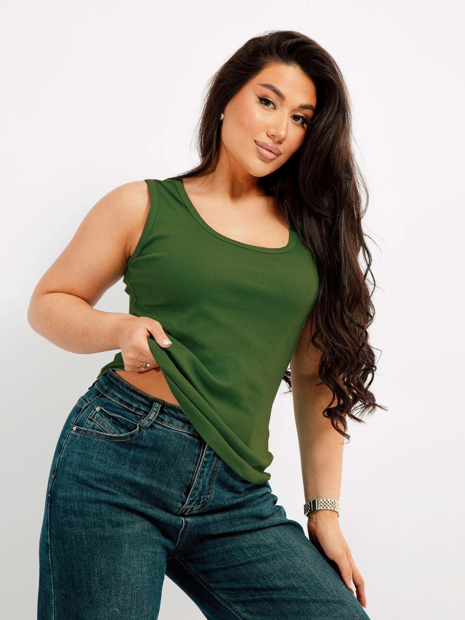 Майка Интерлок, 1 шт., размер 104, хаки